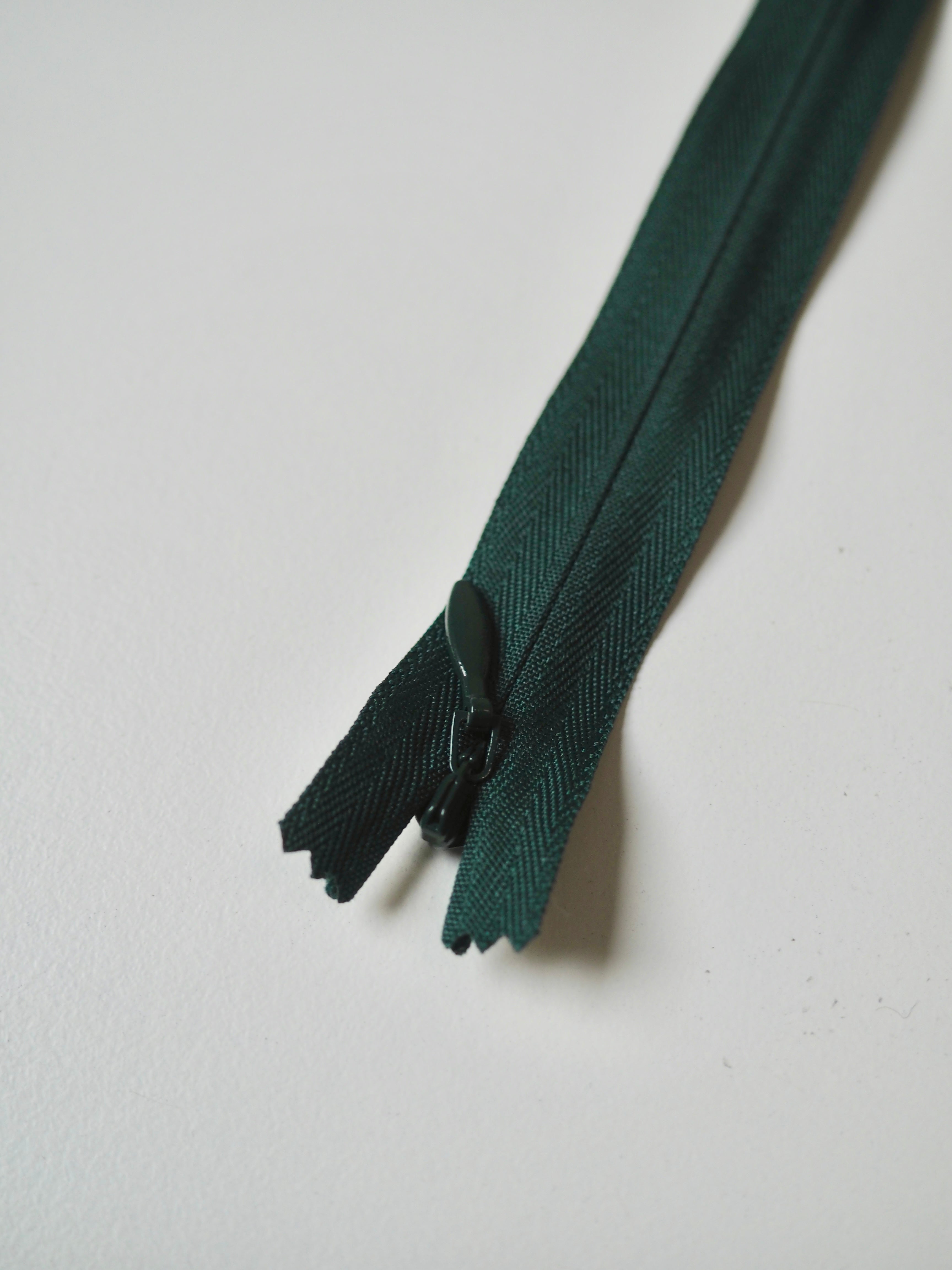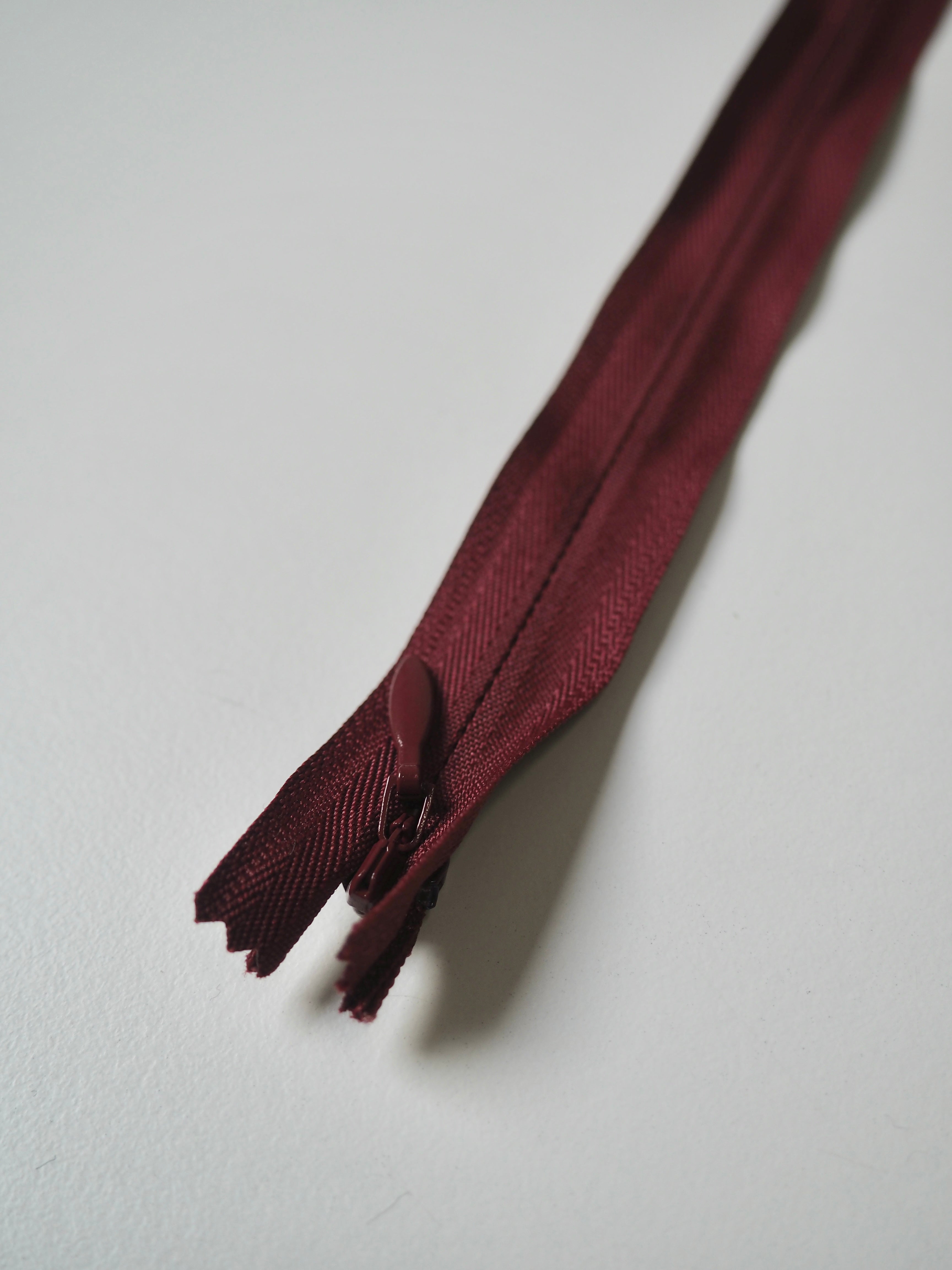 Closed end invisible zips. Available in various colours. Plastic teeth and metal zipper pull. Perfect for using as a hidden closure.