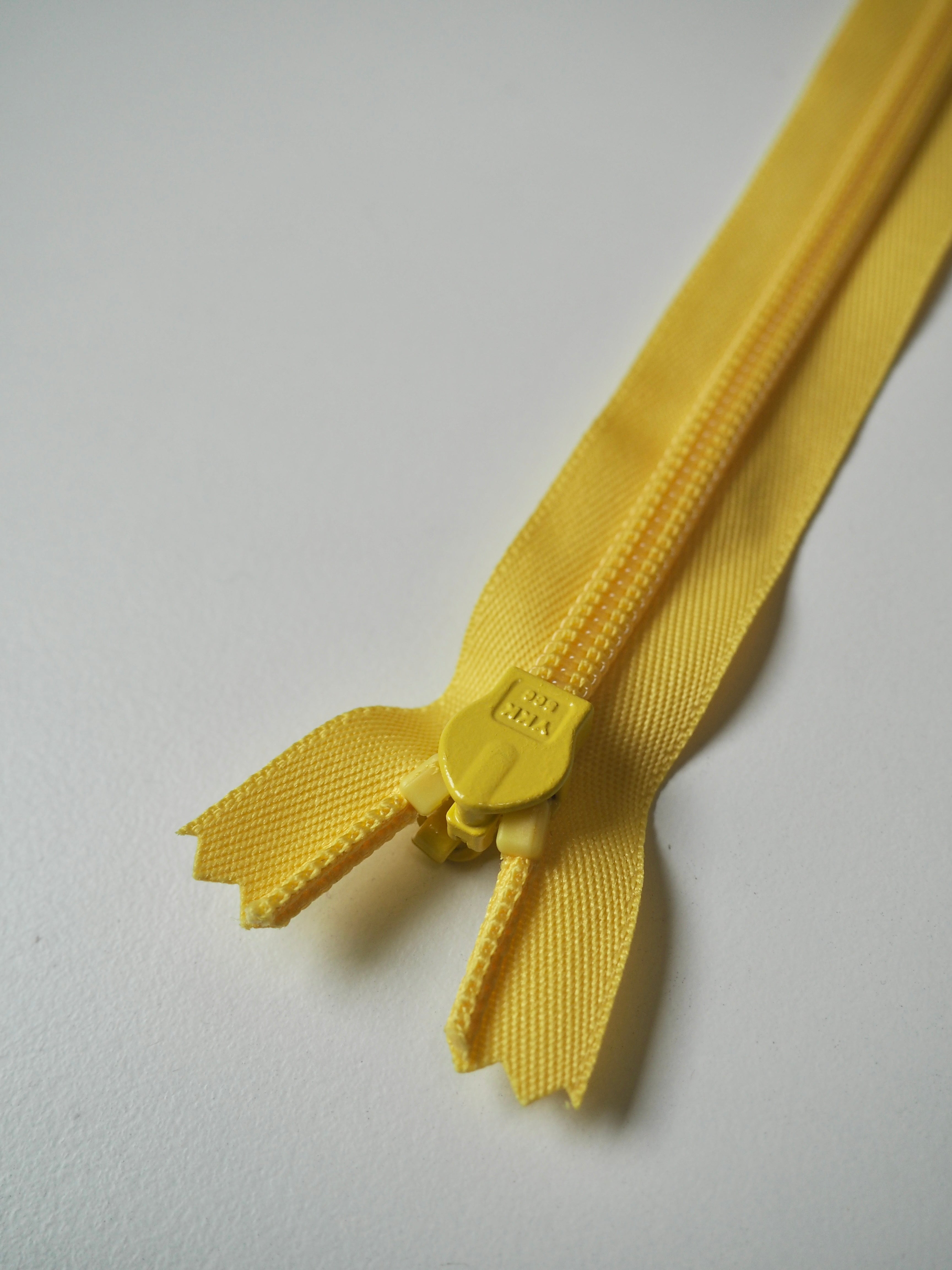 This ex-designer trim is a deadstock zip. Amazing quality and sturdy. Close-ended, invisible zip with matching plastic teeth, extra wide zip tape and larger metal zipper pull.