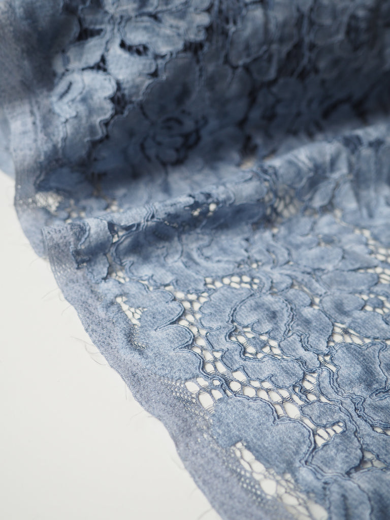 Charcoal Blue Corded Floral Cotton Lace