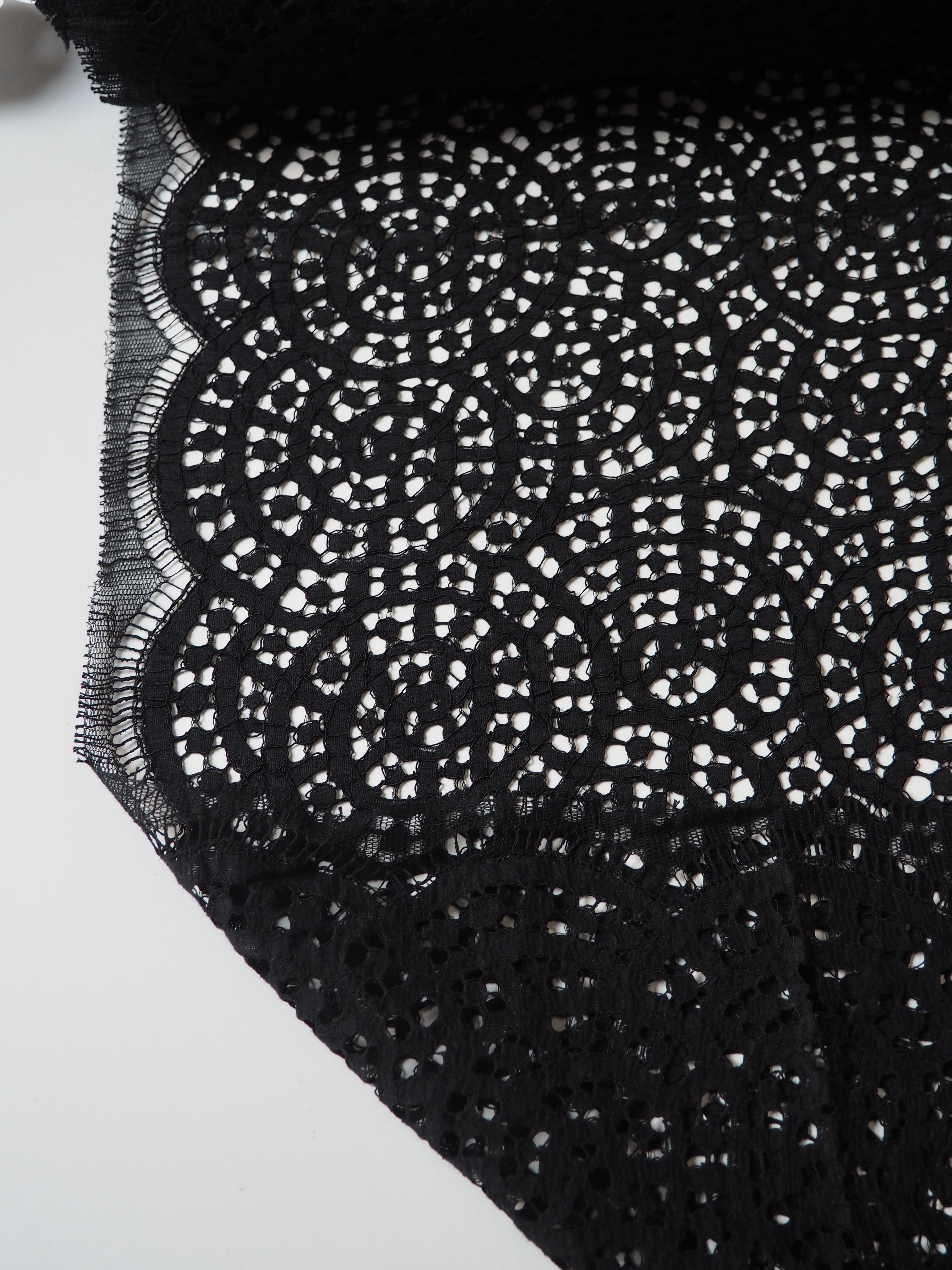 Black Corded Swirl Cotton Lace