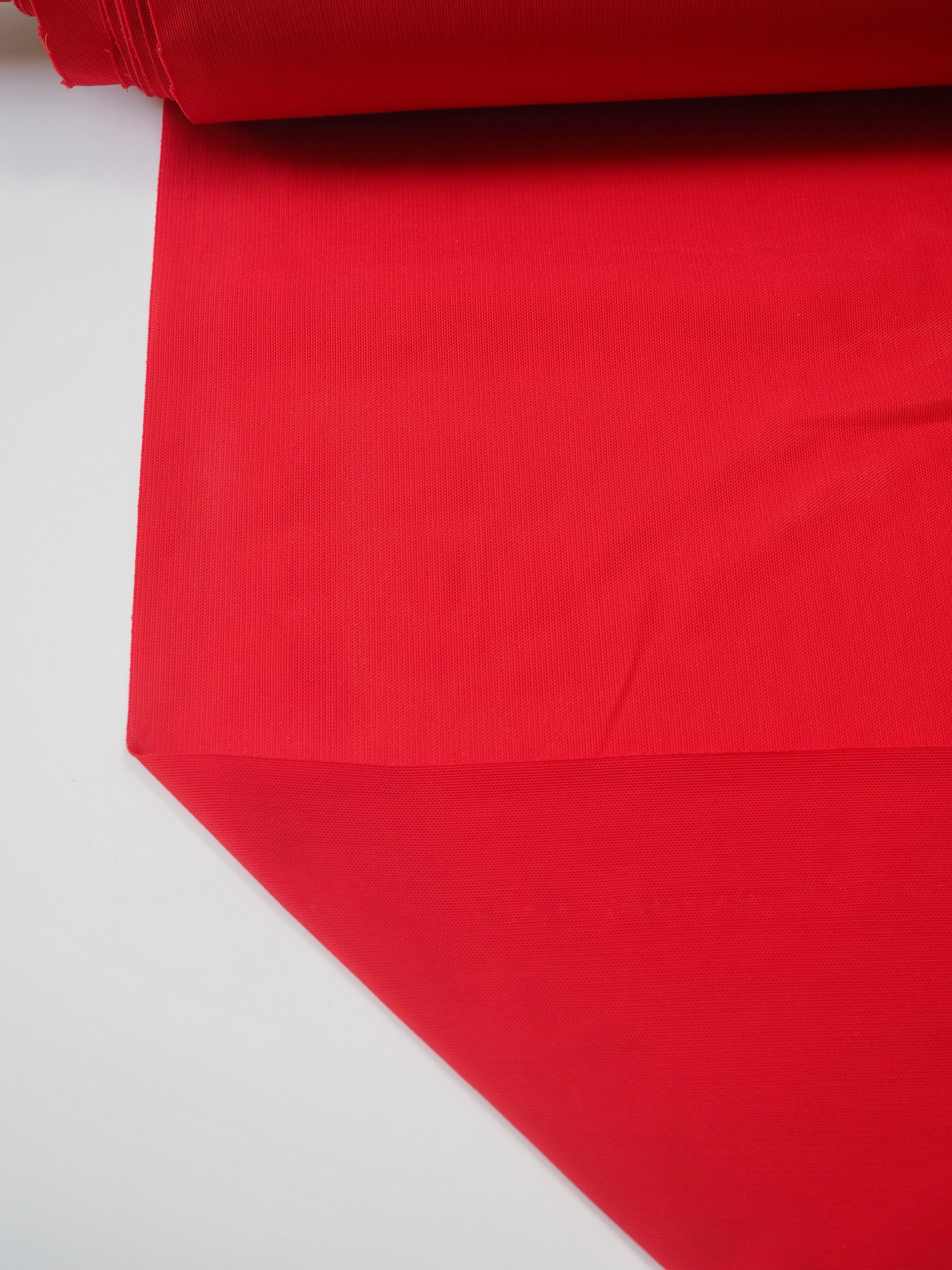 This ex-designer fabric is a stretch powernet. Powernet is a high-stretch (40% Two-way) fuller coverage mesh, with excellent recovery and great breathability. It's common for performance wear and undergarments. It's light to medium weight and has great support with its dense structure, but still slight sheerness when stretched. Perfect for our lingerie patterns, and we even have bra finding kits!