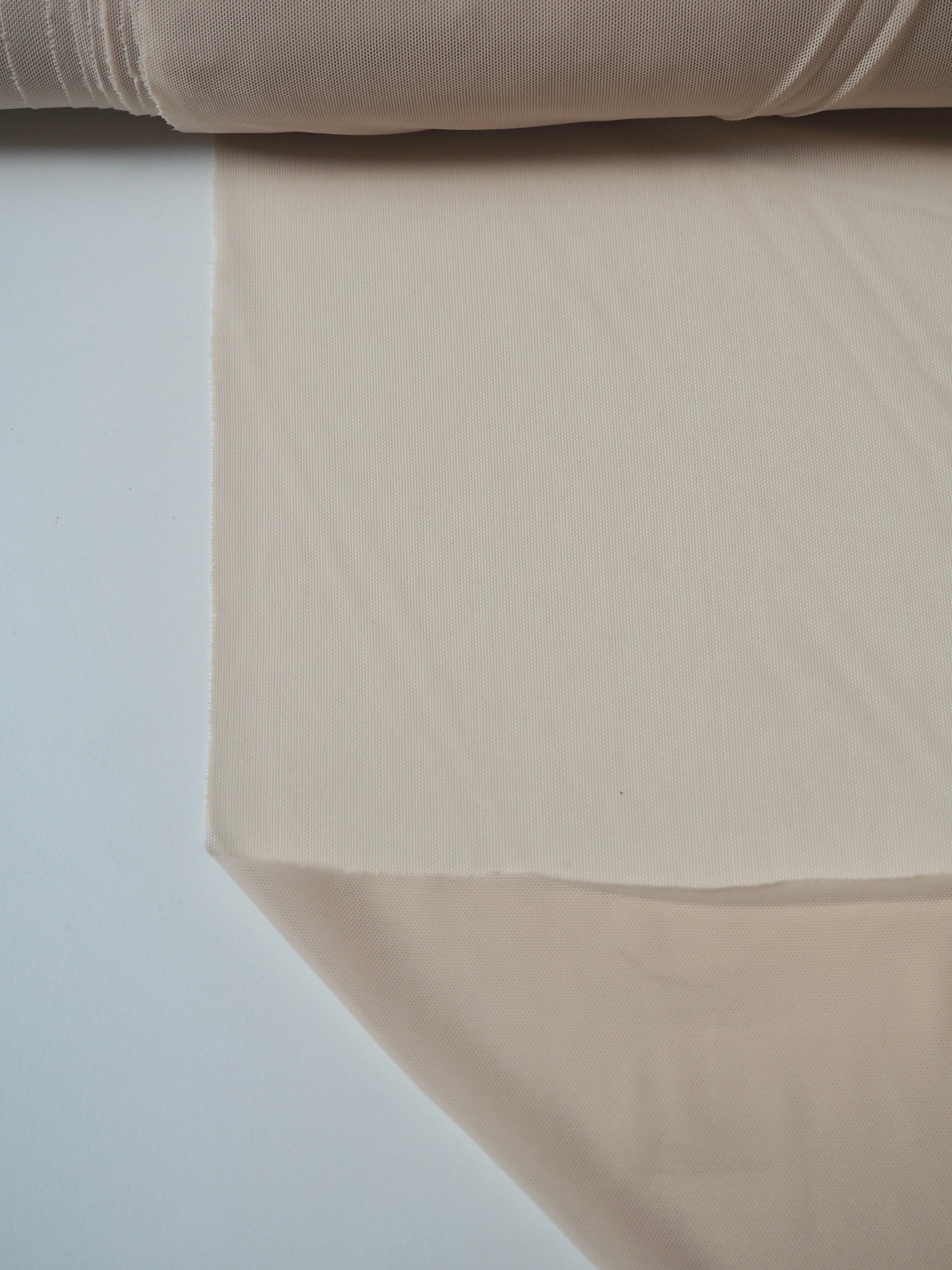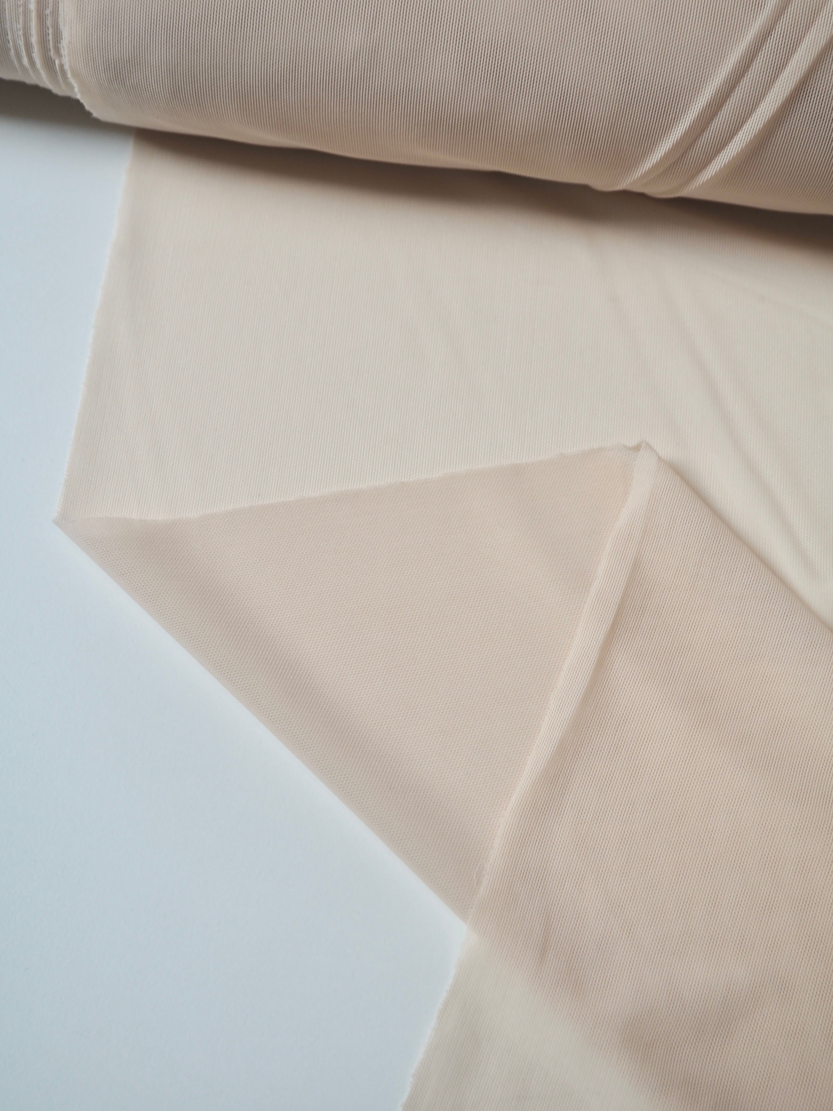 This ex-designer fabric is a stretch mesh. This super soft mesh is so comfortable! It has 4-way minimum 40% stretch and great recovery. Lightweight and drapey, and semi-sheer. Perfect for our lingerie patterns! We also have bra findings kits!