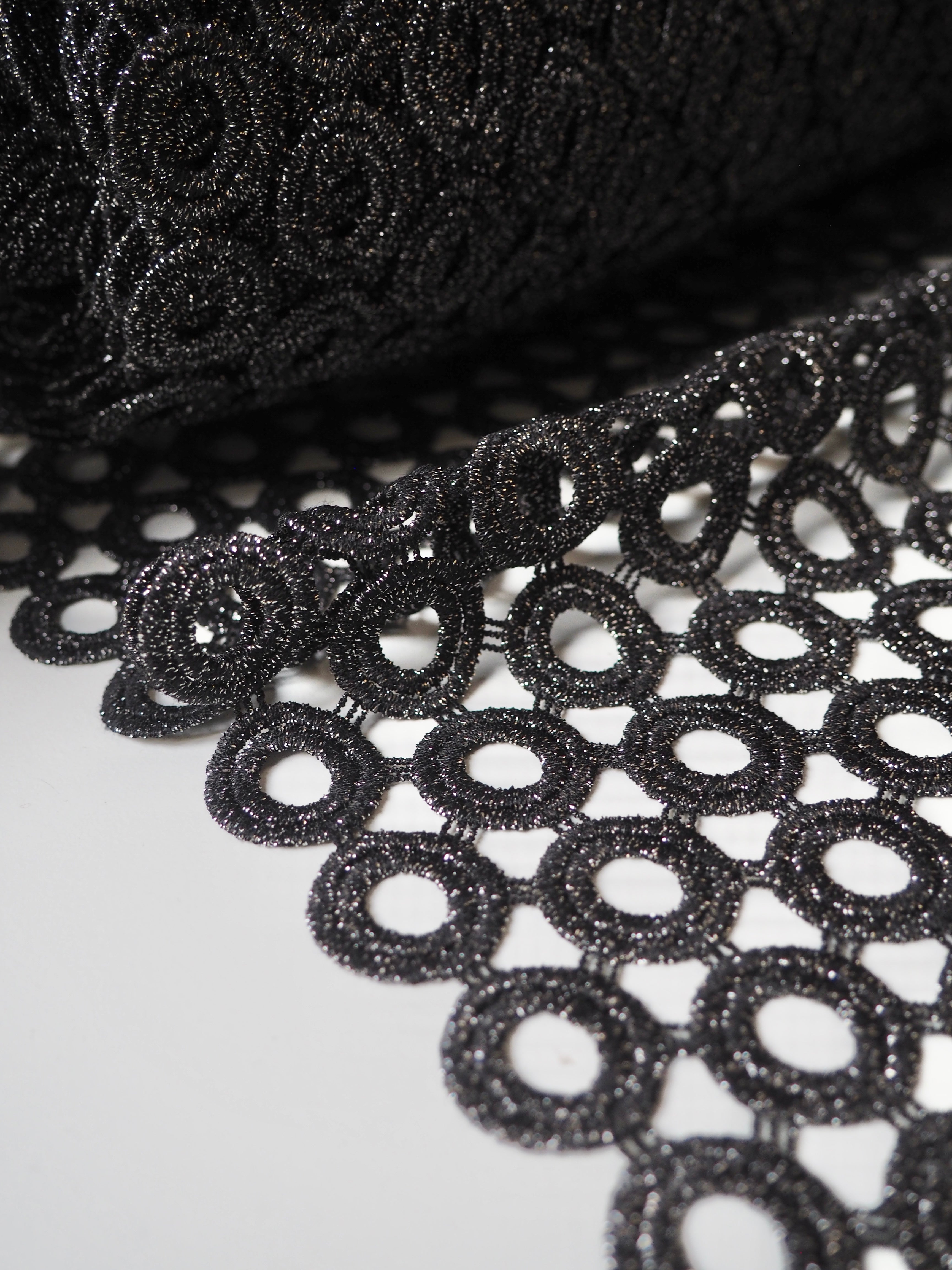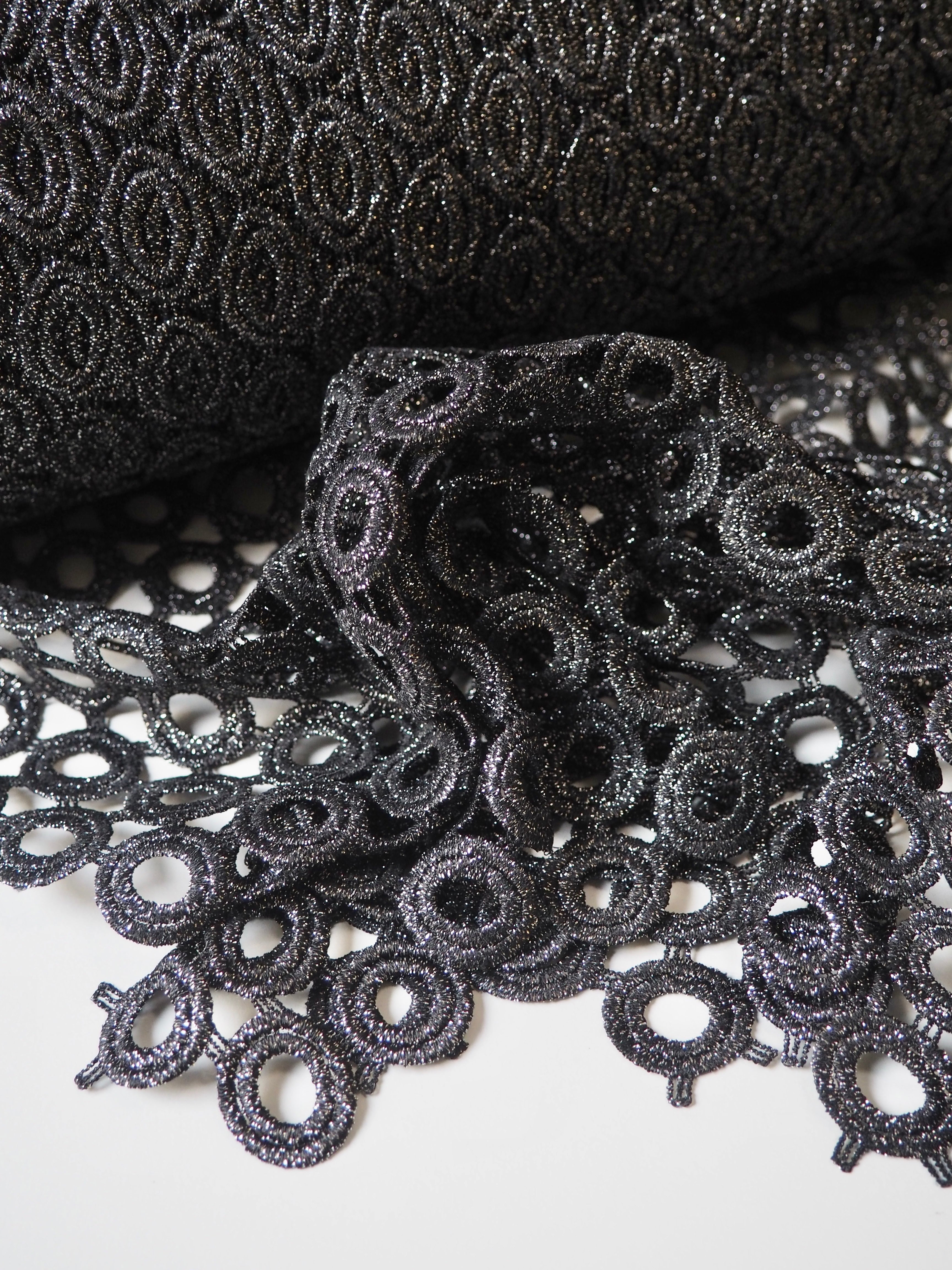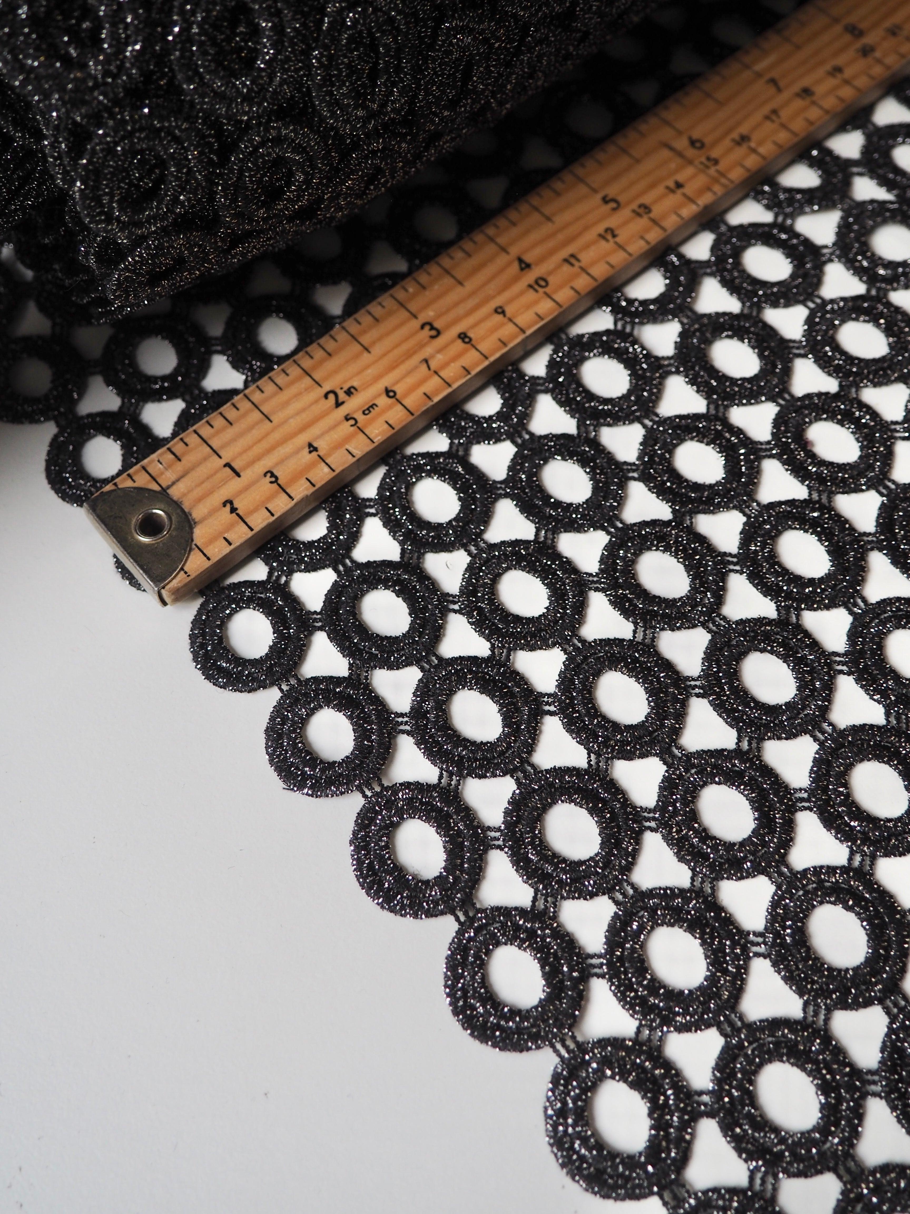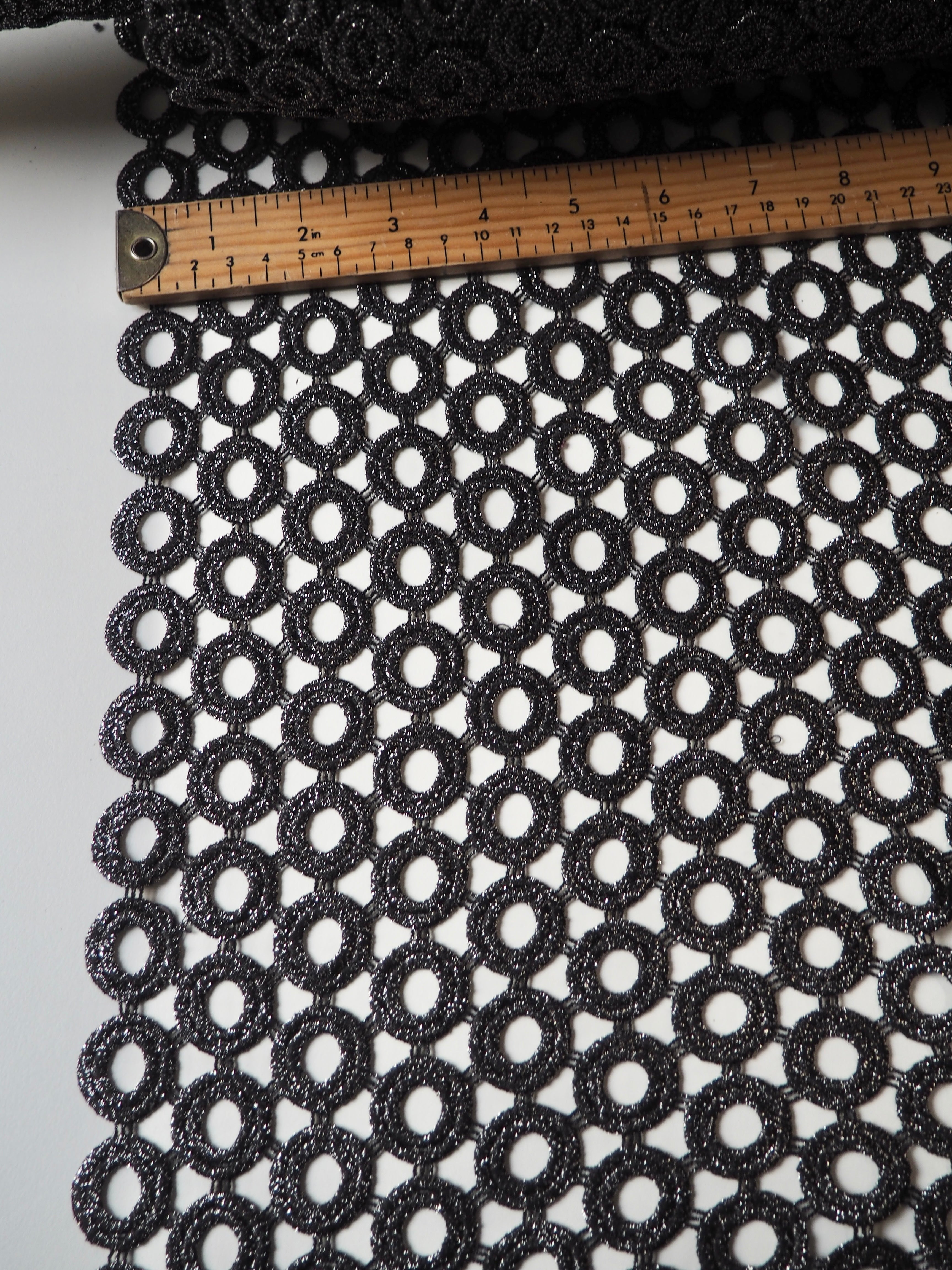 This ex-designer fabric is a top-quality guipure lace. It's a lovely circle design that is quite thick and sturdy. The fabric can be used as one piece or the motifs could be cut out and appliqued on for denser coverage. Luxurious, soft handle and drapes and moves well. Medium weight with such a beautiful visual texture. Perfect for a special occasion piece, or even a sheer top!
