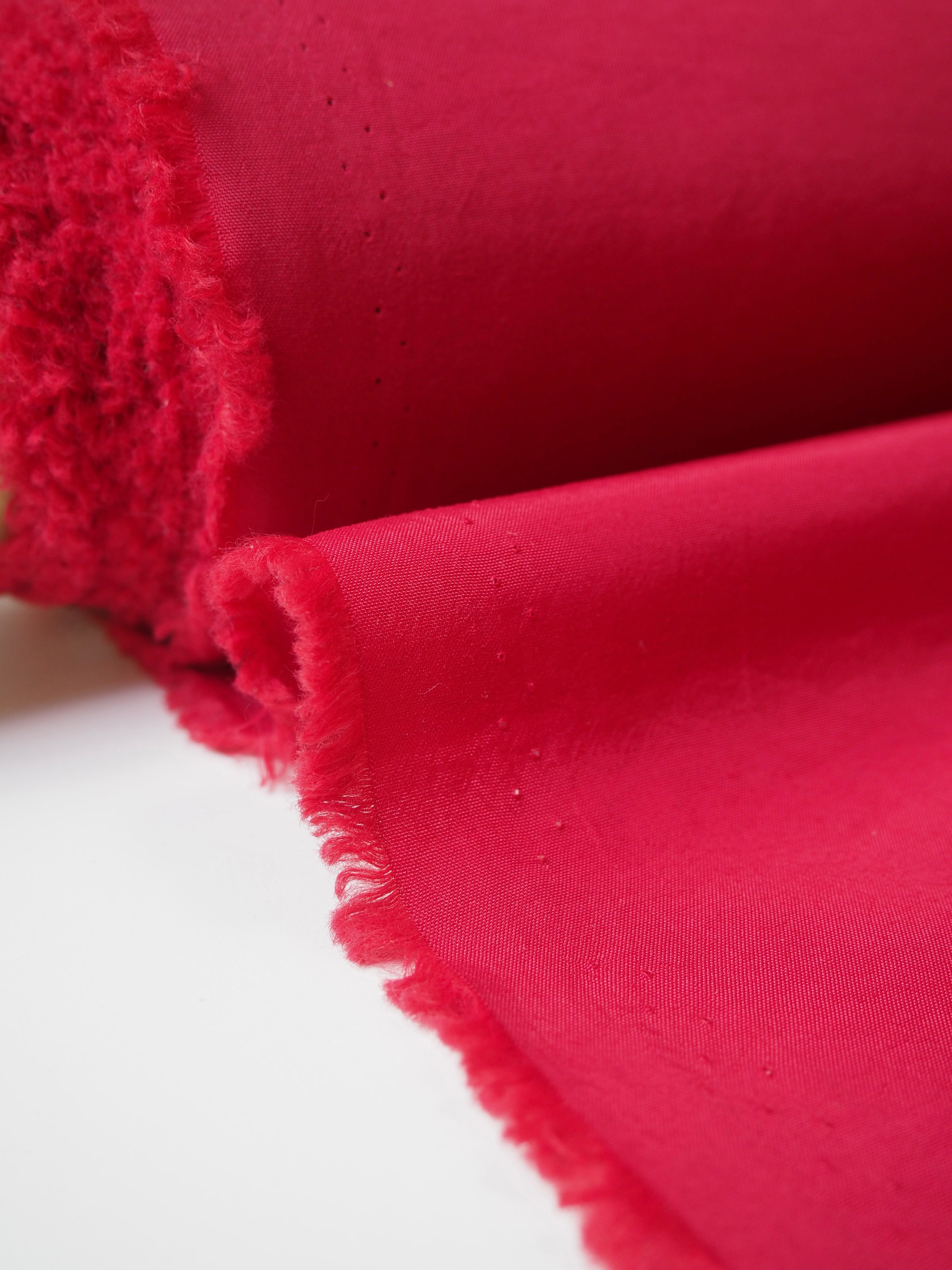 This ex-designer fabric is unique poly. It has a plain weave, is opaque, and has a slightly wool-y feeling handle. It's more fibrous to the touch. Lightweight with a crisp structure. Perfect for a top or as a lining on a jacket!