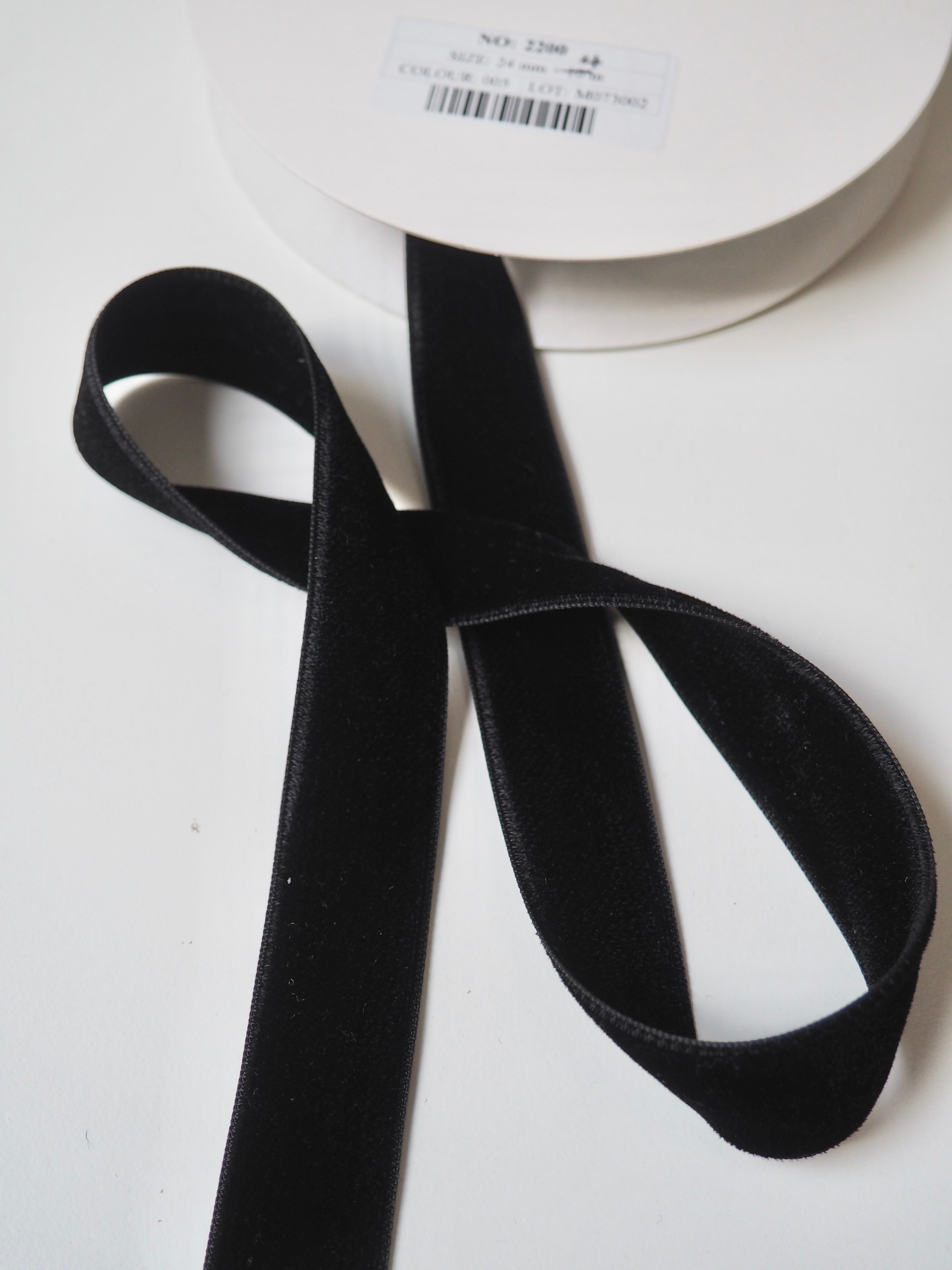 This ex-designer trim is a velvet ribbon. It's soft and luxurious, with a subtle braided edge on each side, and matte flat back. Would look great on garments, as well as bags and home-wares!