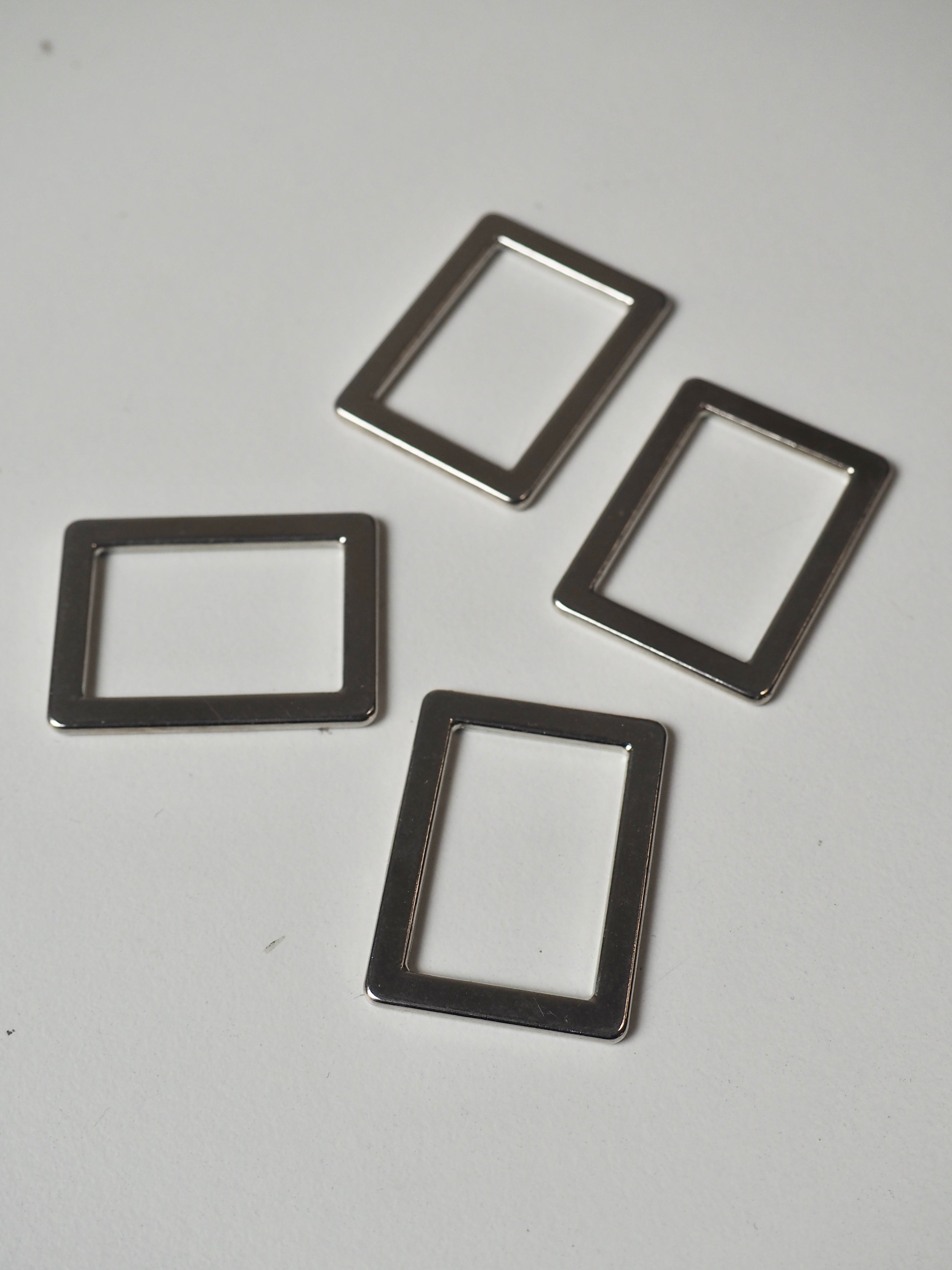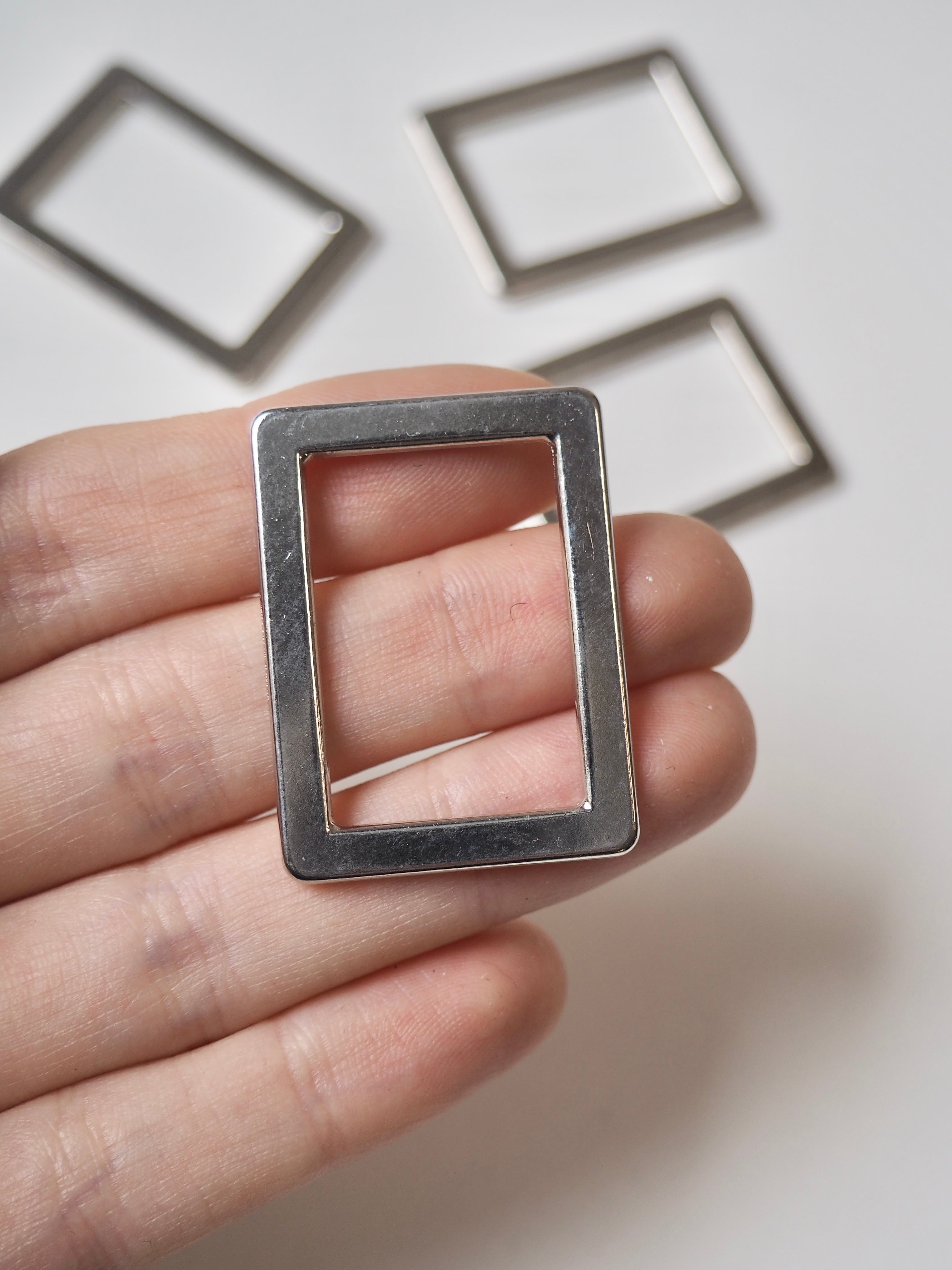 This ex-designer hardware is a rectangular flat ring. These can be used for bag making and accessories. Ideal for attaching straps!