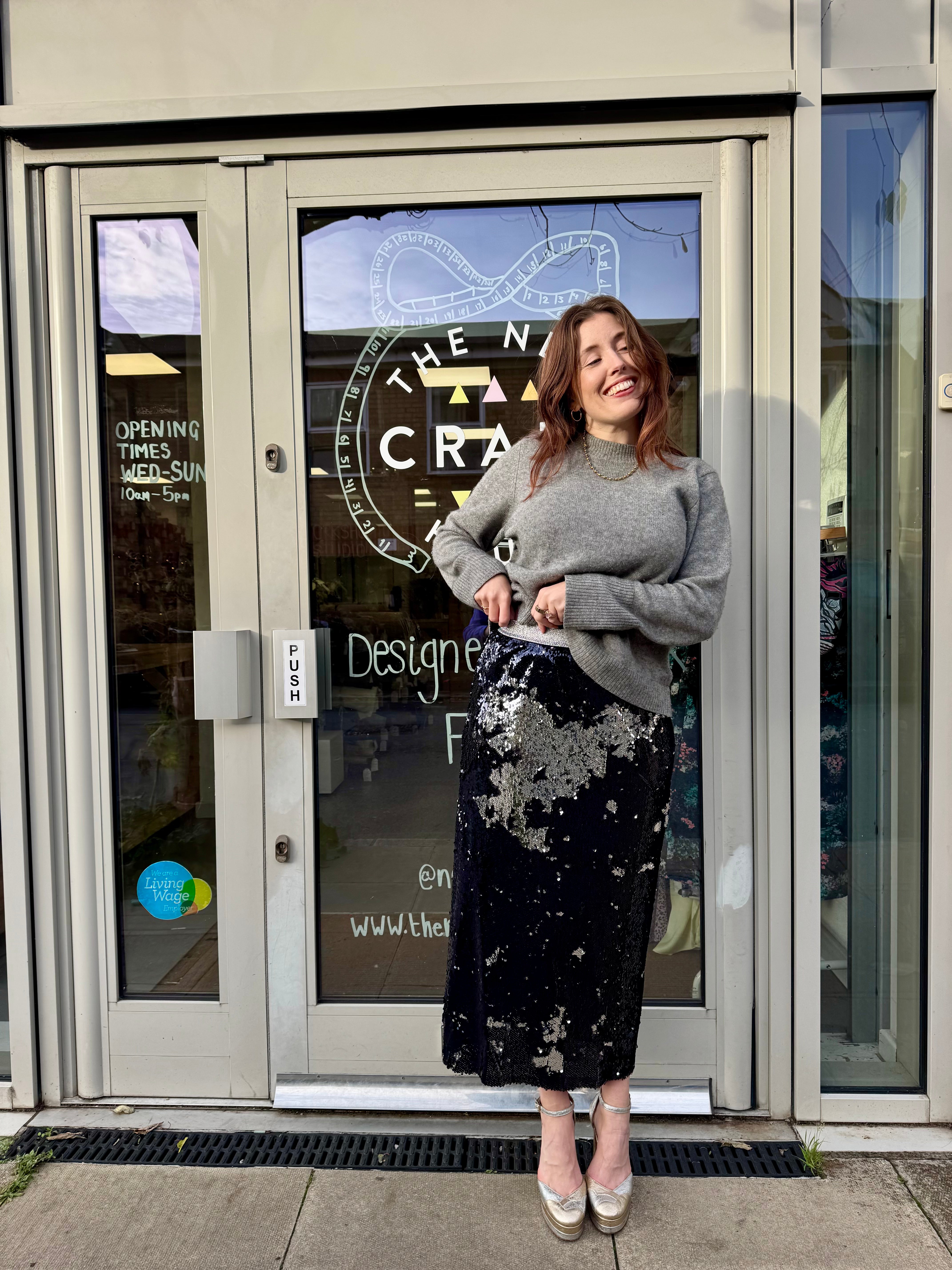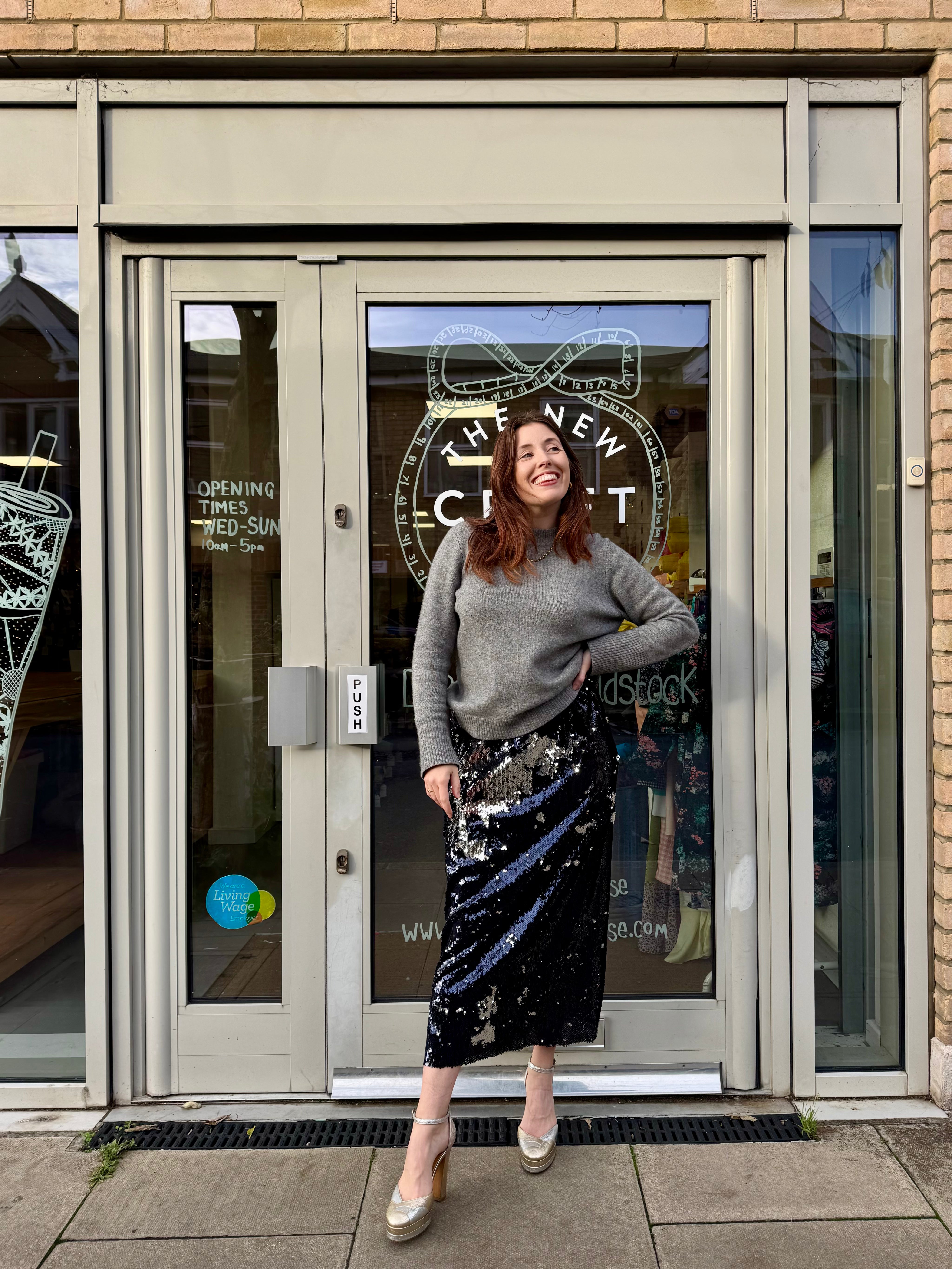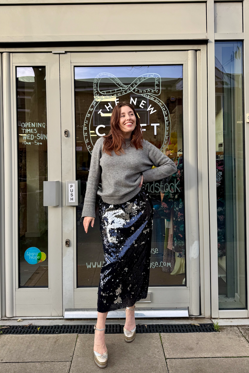 This kit has everything you need to make your own glitzy sequin party skirt! We've bundled together all of the fabric, elastic and thread you'll need to make it for less than you could buy them separately. Dress this sequin beauty up for all your festive parties or wear her with a jumper and boots for a daytime look. This fabric has widthways stretch so the skirt fits to your body beautifully and moves comfortably with you. Super easy to sew and no pattern needed, you'll be sent the PDF tutorial to your email address after purchase. We'll be wearing ours so much!