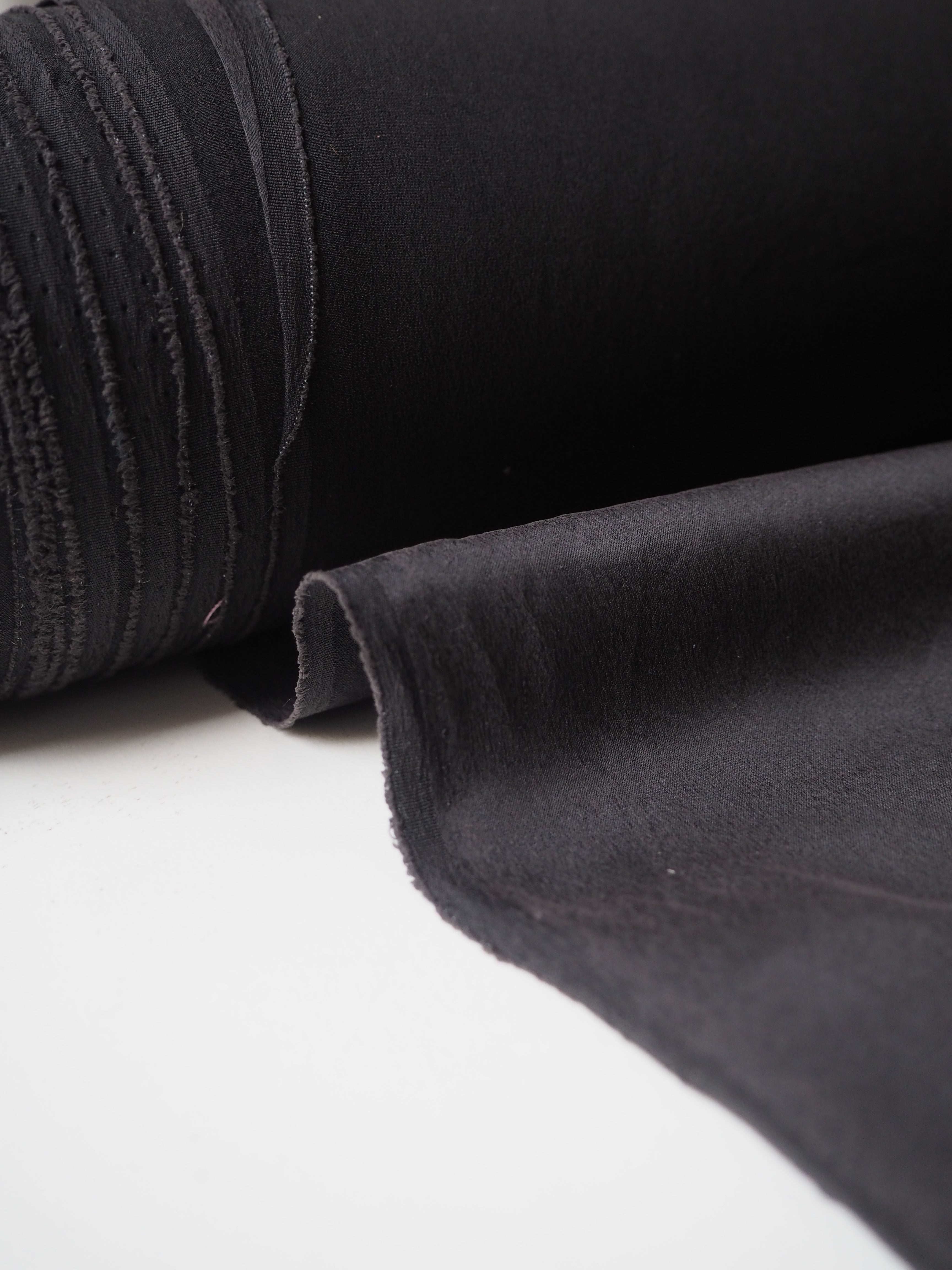 This ex-designer fabric is a washed silk. It's a luxuriously soft silk, with a washed finish. This makes the silk drape better and softens it. The stretch gives it more versatility, with about 15% width-ways. It has incredible liquid movement! Super lightweight and opaque. Such a wonderful handle, feels so fantastic to the touch! Perfect for skirts, blouses, and lingerie!