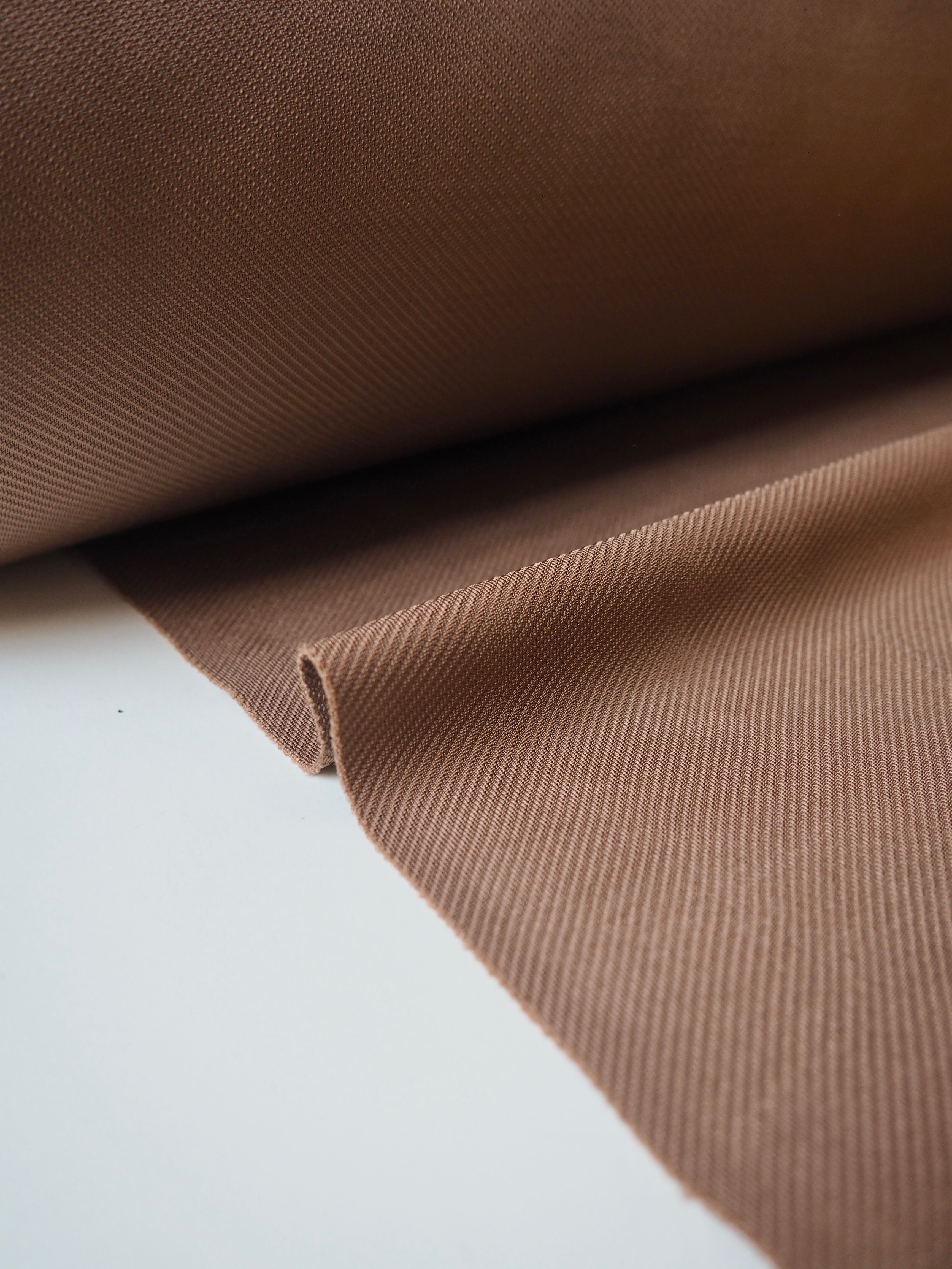 This ex-designer fabric is a jersey. It has a twill knit structure, which gives it an interesting texture and enhanced sheen. Completely opaque, quite slinky, with a lovely finish. Has a great drape and approximately 20% width-ways stretch. Perfect for an elevated basic!