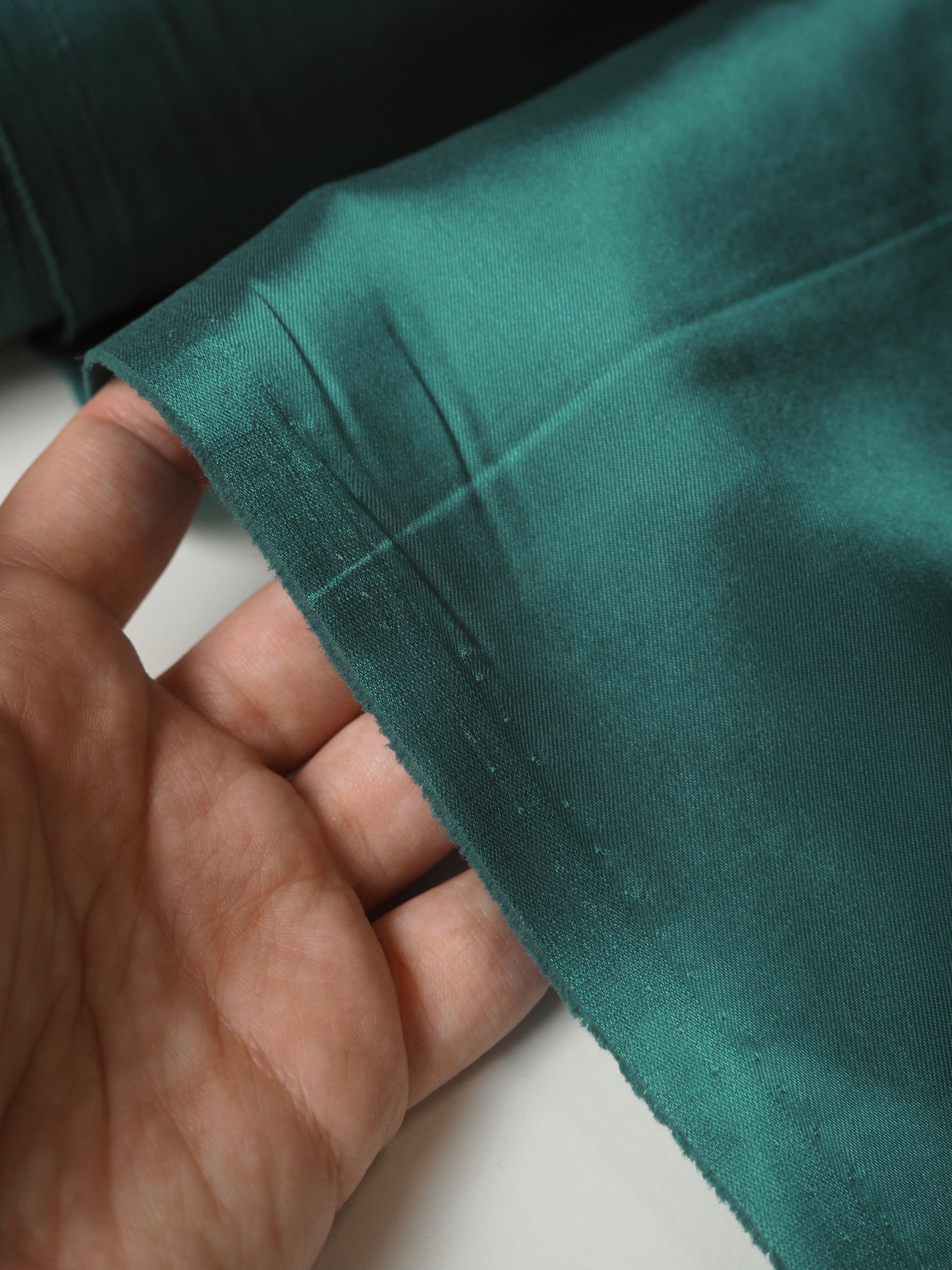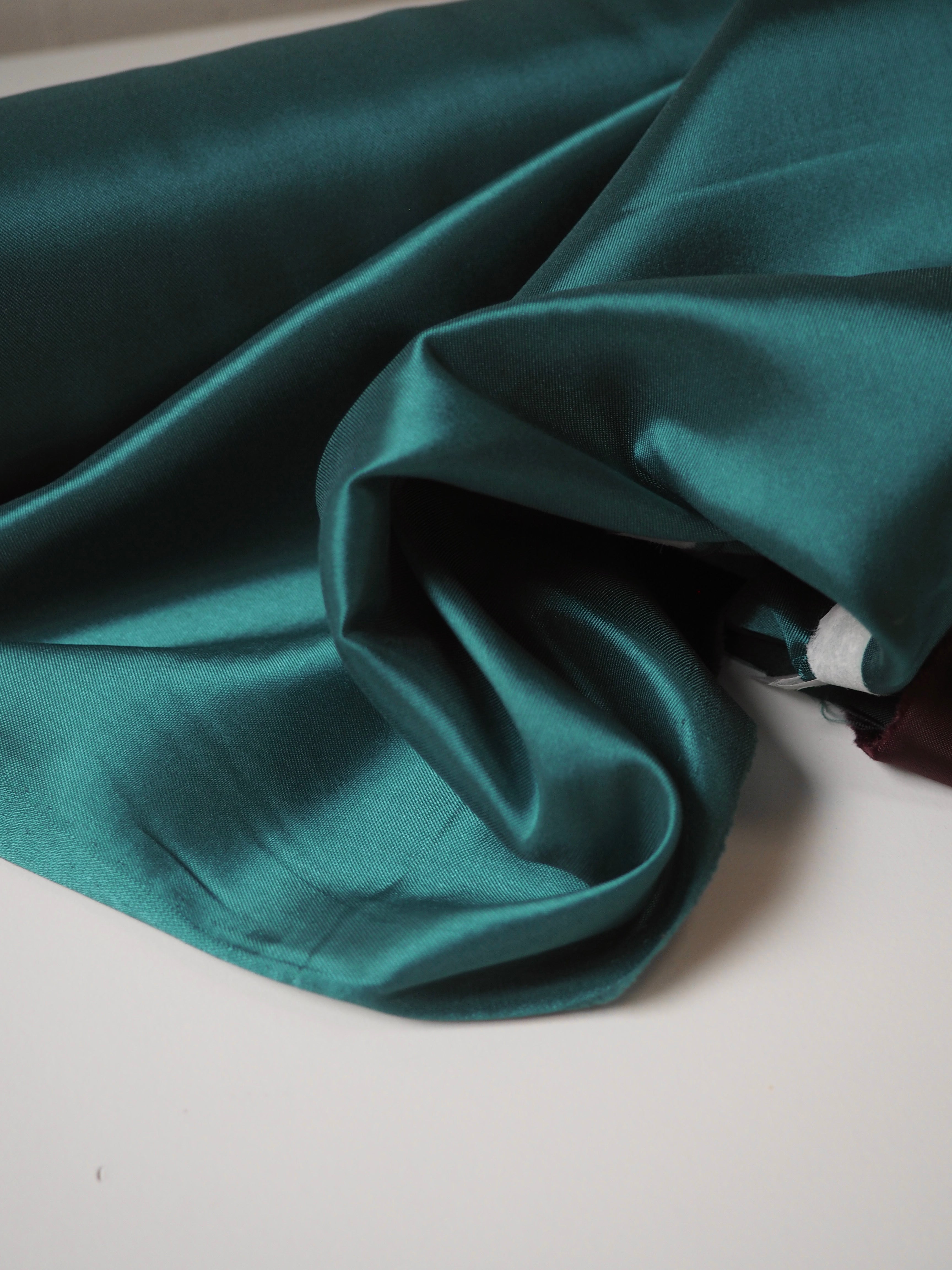 This ex-designer fabric is a stretch lining. It has a twill weave in a soft and slinky acetate fibre. Has a gentle 10% stretch width-ways. Lightweight with a gentle drape and nice satin finish. Has a slight structure to it as well. Opaque. Ideal for lining any garment, especially a suit jacket or coat!