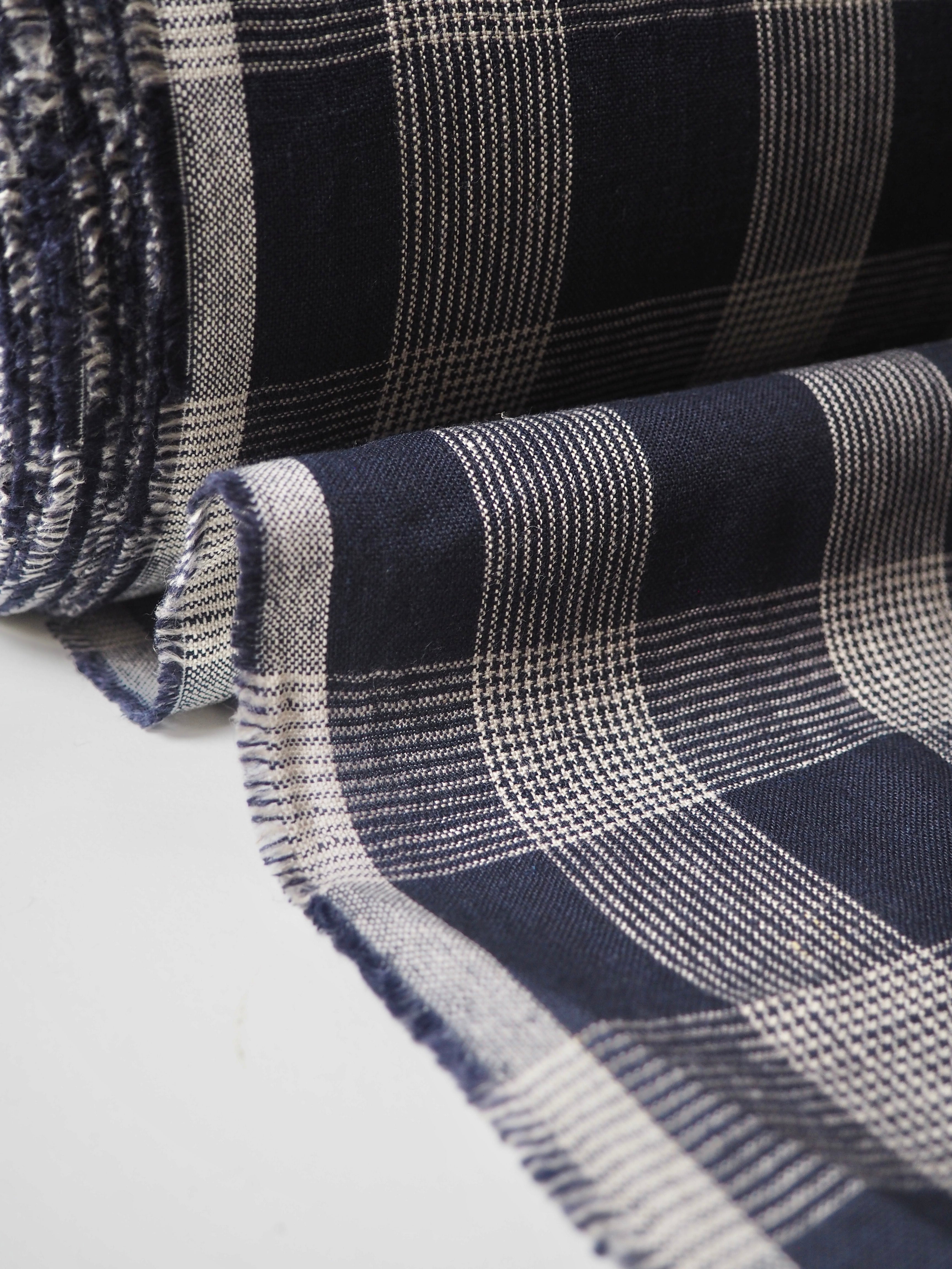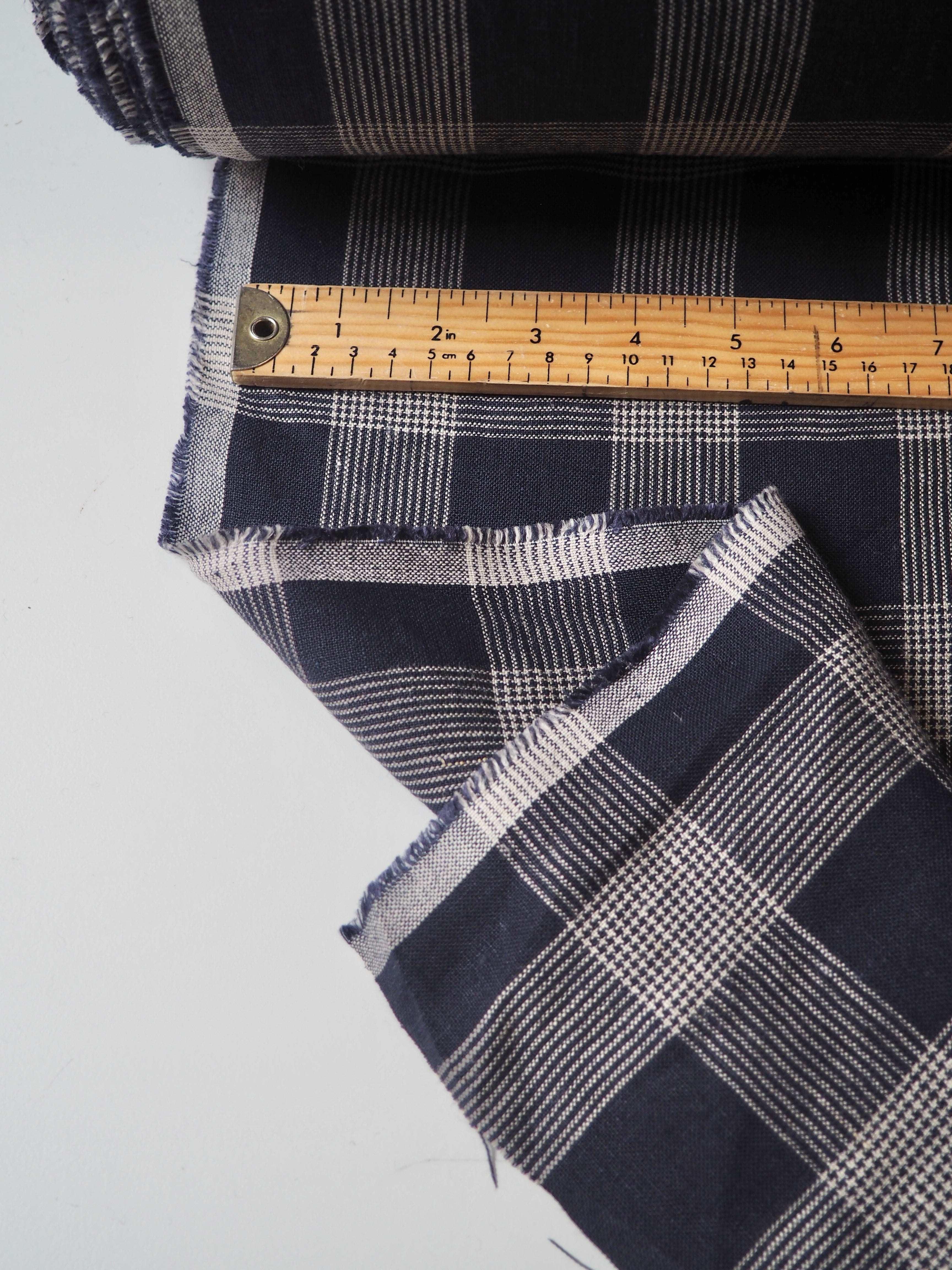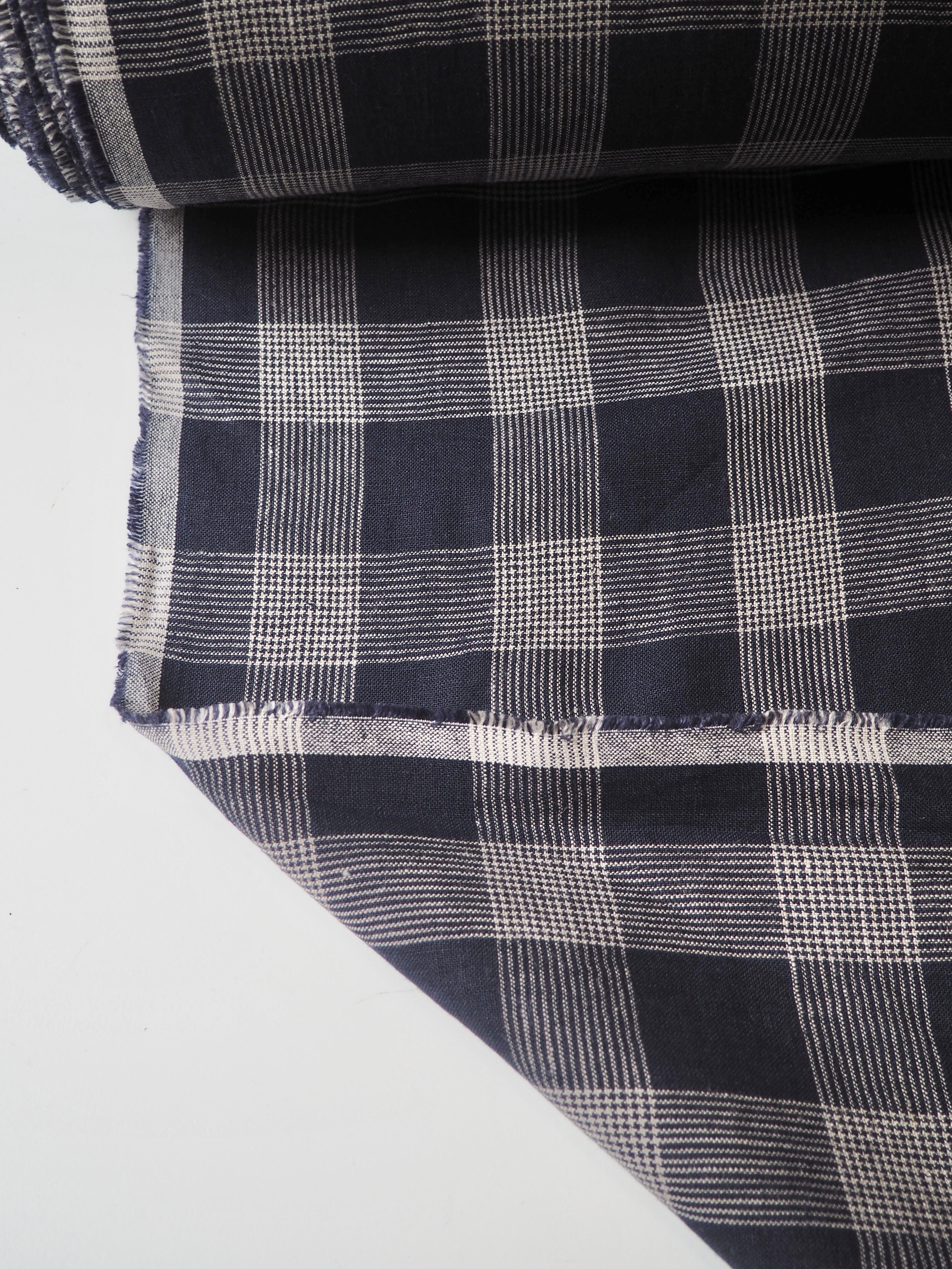 This ex-designer fabric is a beautiful linen. It's a navy and slightly off-white check that's quite classic and cozy. It has a soft and gentle linen weave with a typical linen texture. It has a brilliant handle that's so wearable. Lightweight with a gentle structured drape, and fully opaque. From popular London-based brand Beyond Nine. Lovely for a bias dress of skirt, summer tops or Everyday Trousers, or even a tablecloth and napkin set!