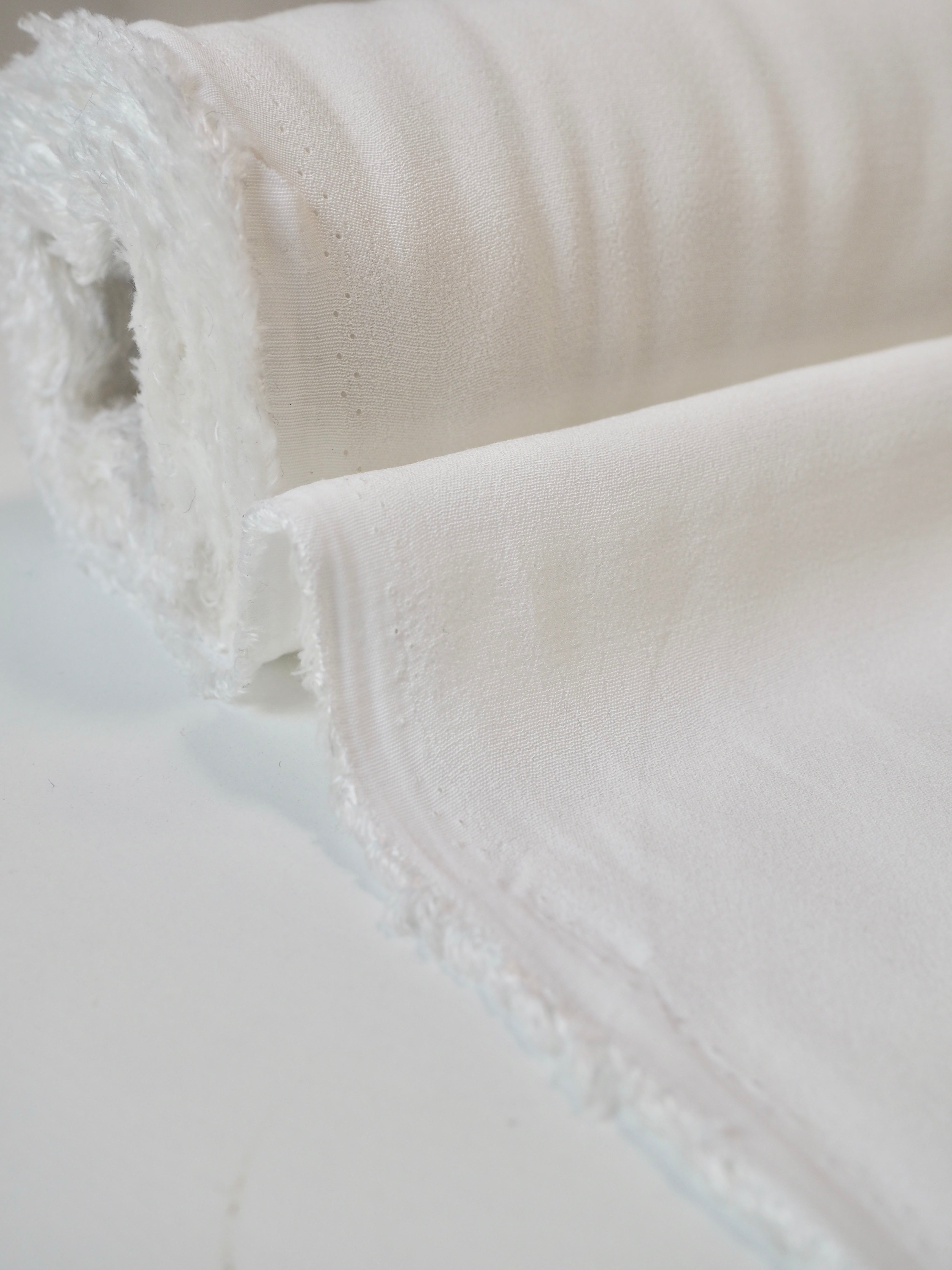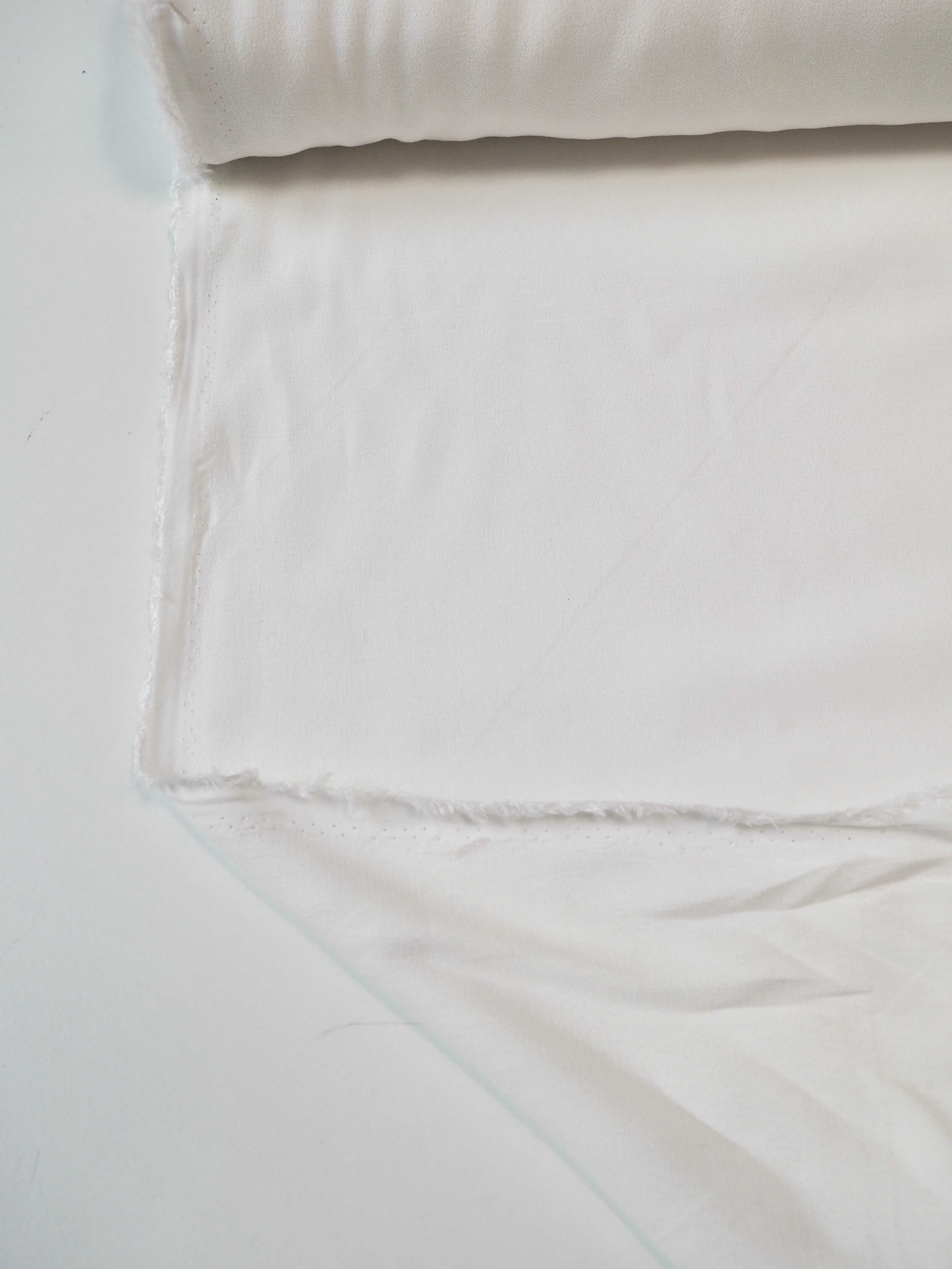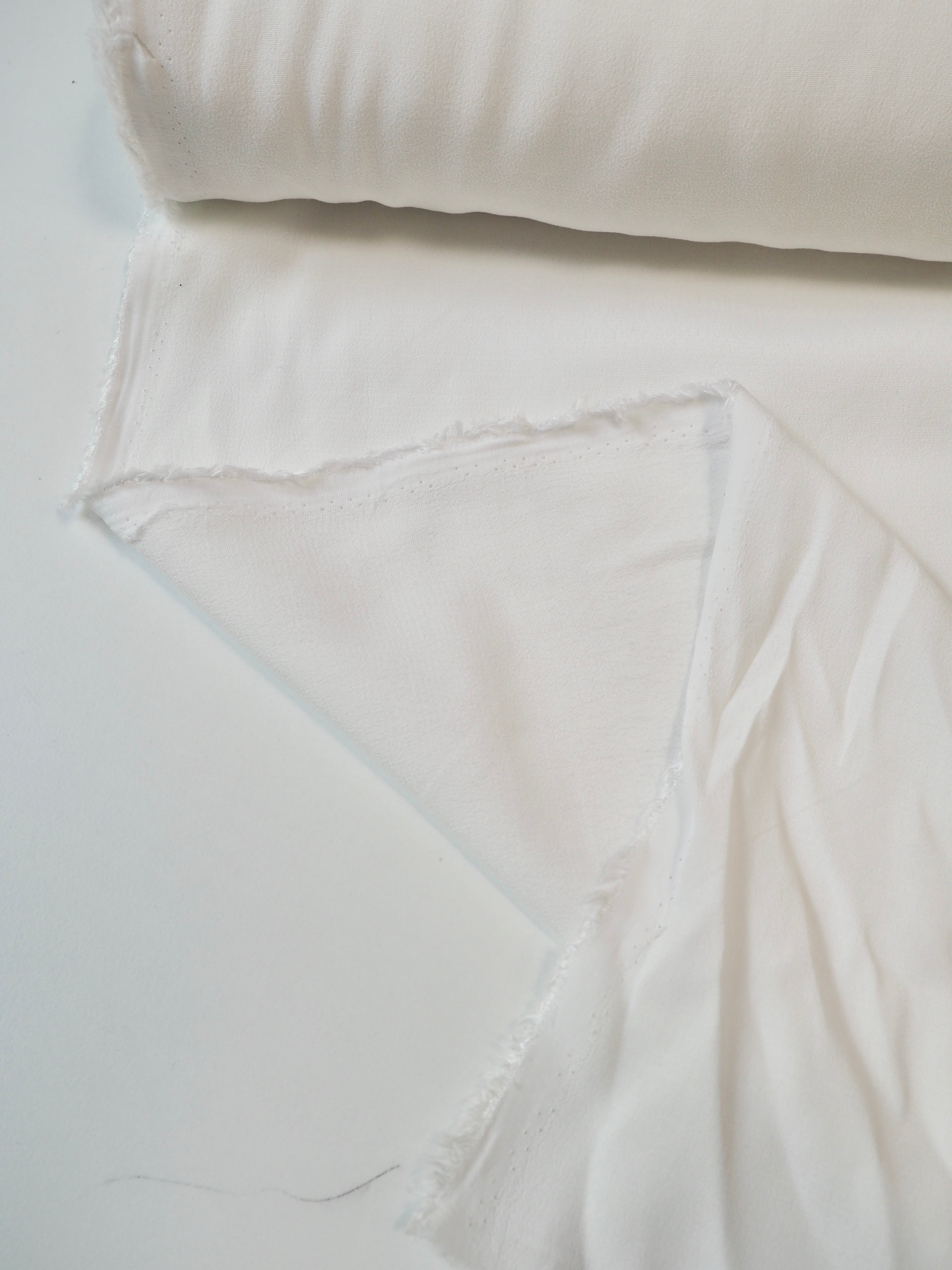This ex-designer fabric is a crepe. It's a lovely lightweight crepe, with a softer crepe handle. It has wonderful movement and is very drapey. Has a lovely soft handle, and is slightly sheer, so it might need to be lined. Perfect for tops, dresses, and bridal!