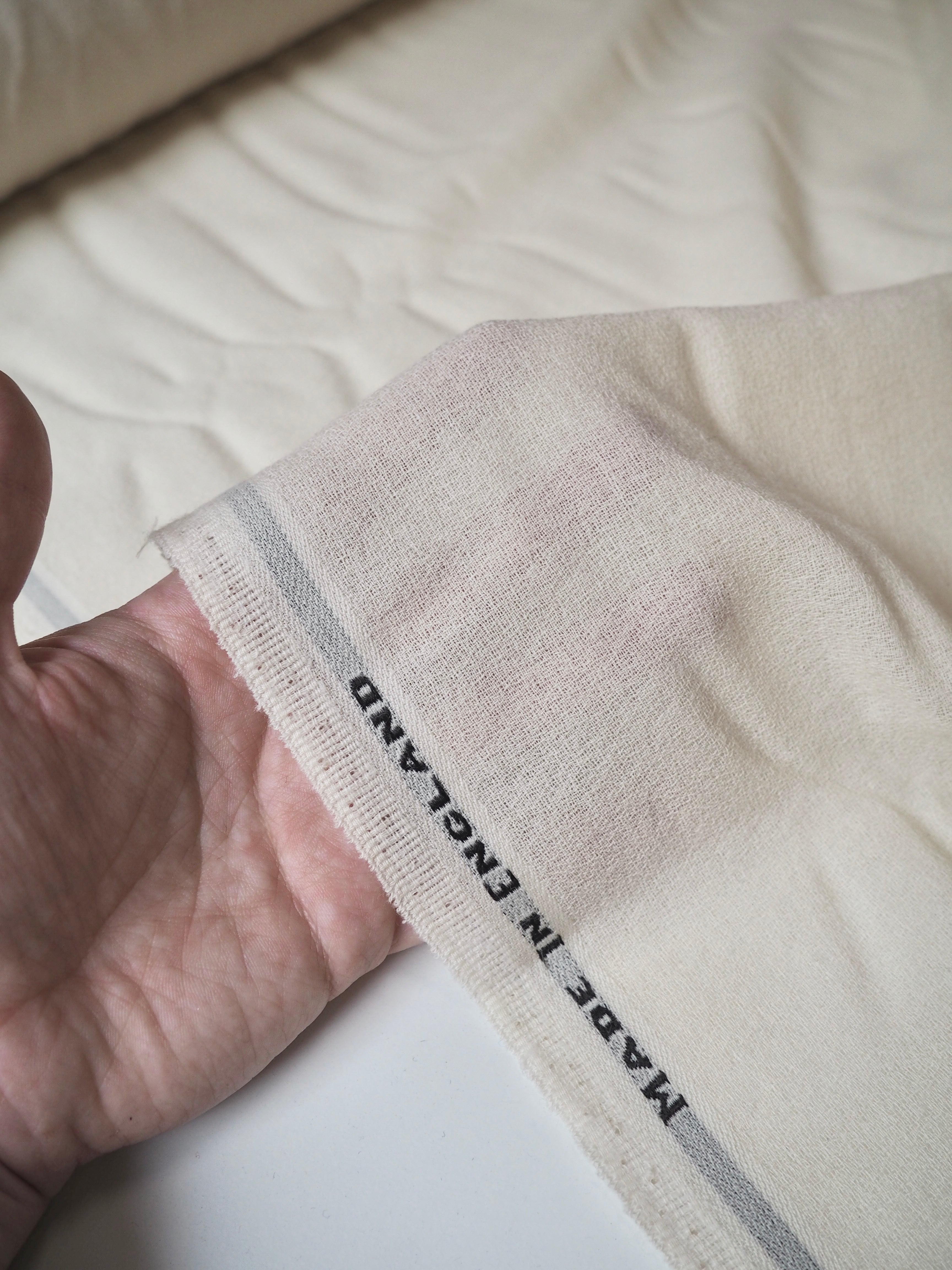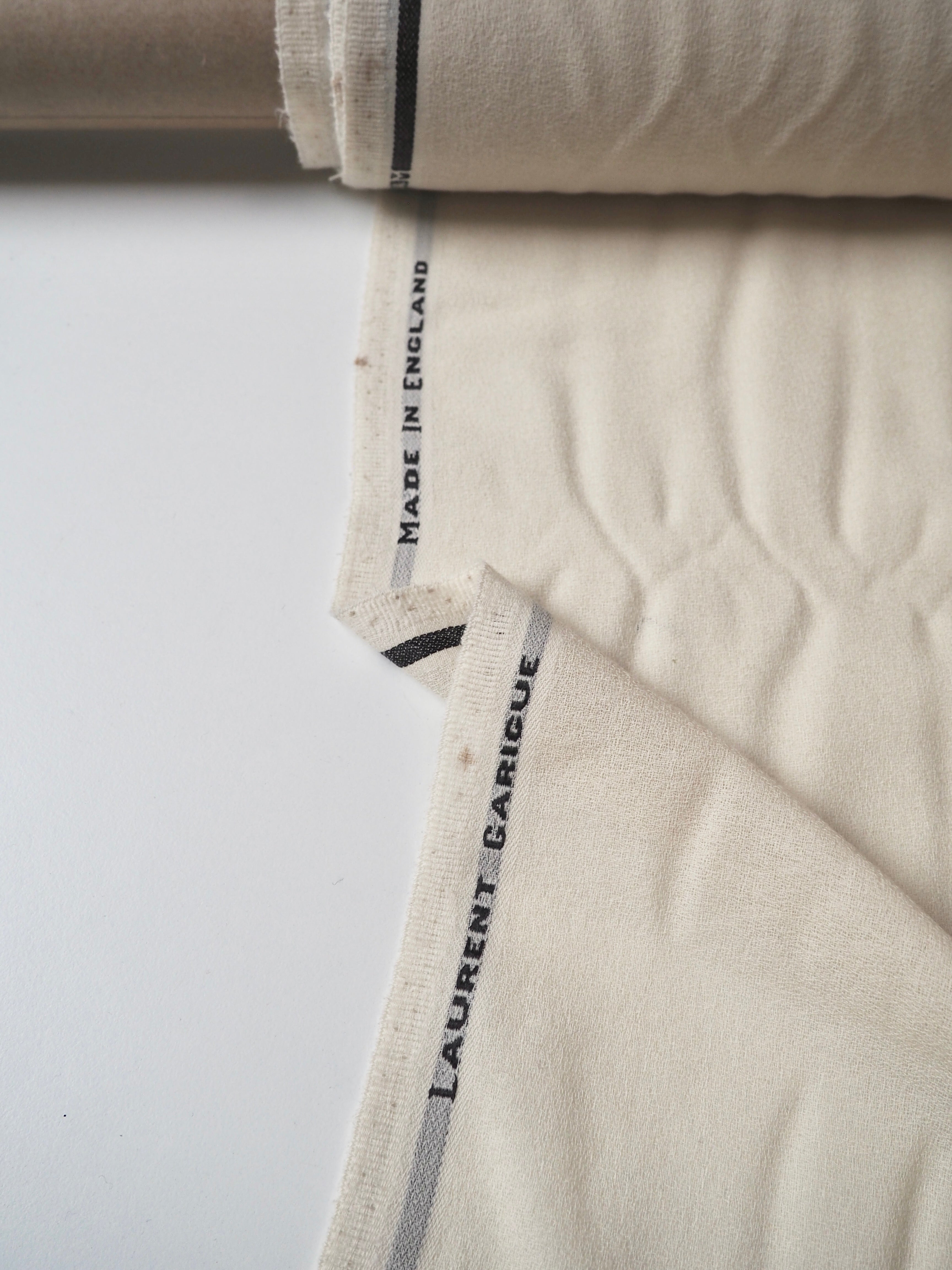 This ex-designer fabric is a wool crepe. It's super lightweight, with such a gentle and graceful drape. It still has the characteristic crepe texture, with a much finer handle and weave. Such a lovely, quality softness and warmth, and semi-sheer. From quality manufacturer Laurent Garigue from the UK. Ideal for a scarf, top, pr lined dress or skirt! This cloth has some marks around the selvedge, the price reflects this.