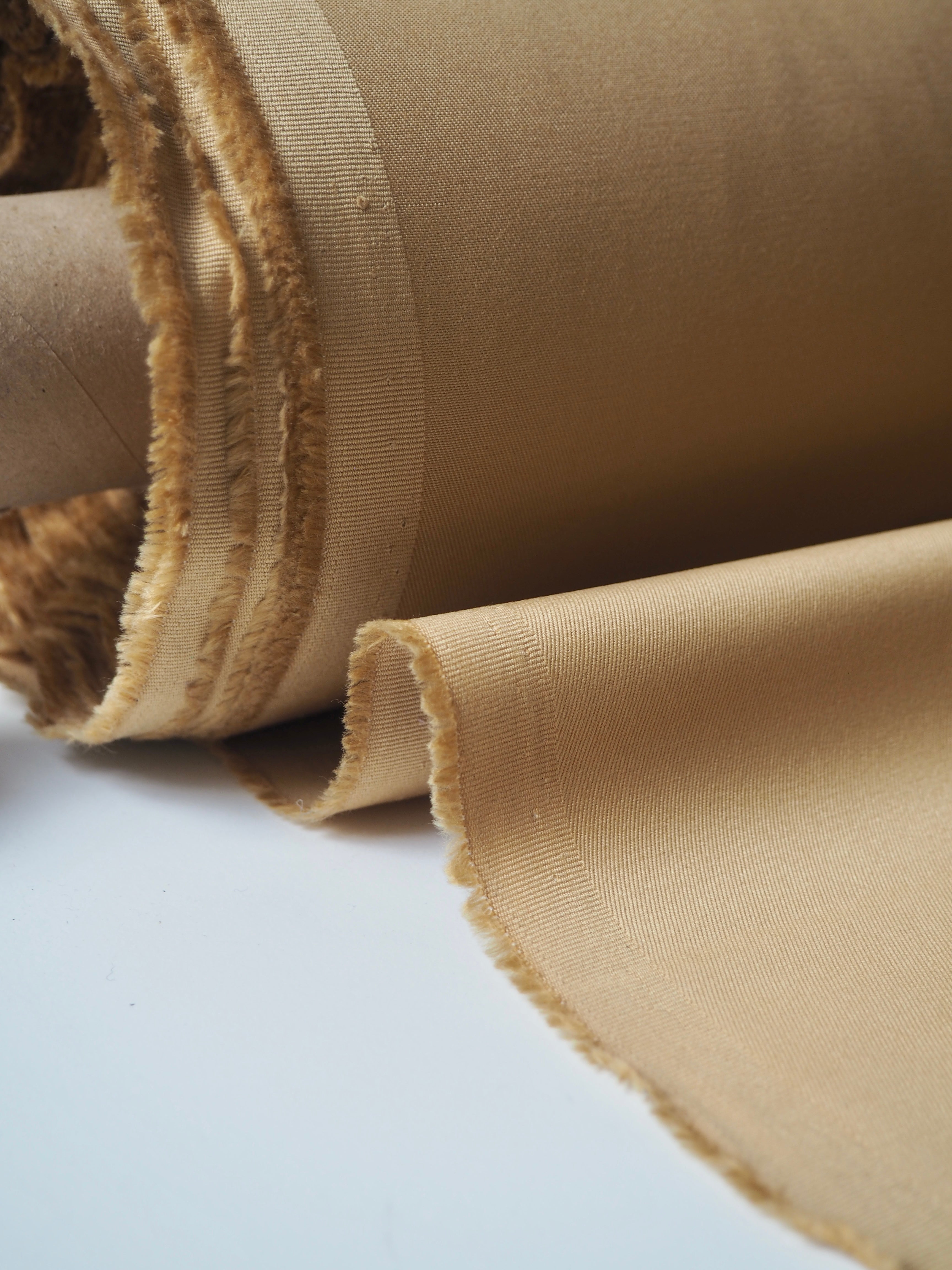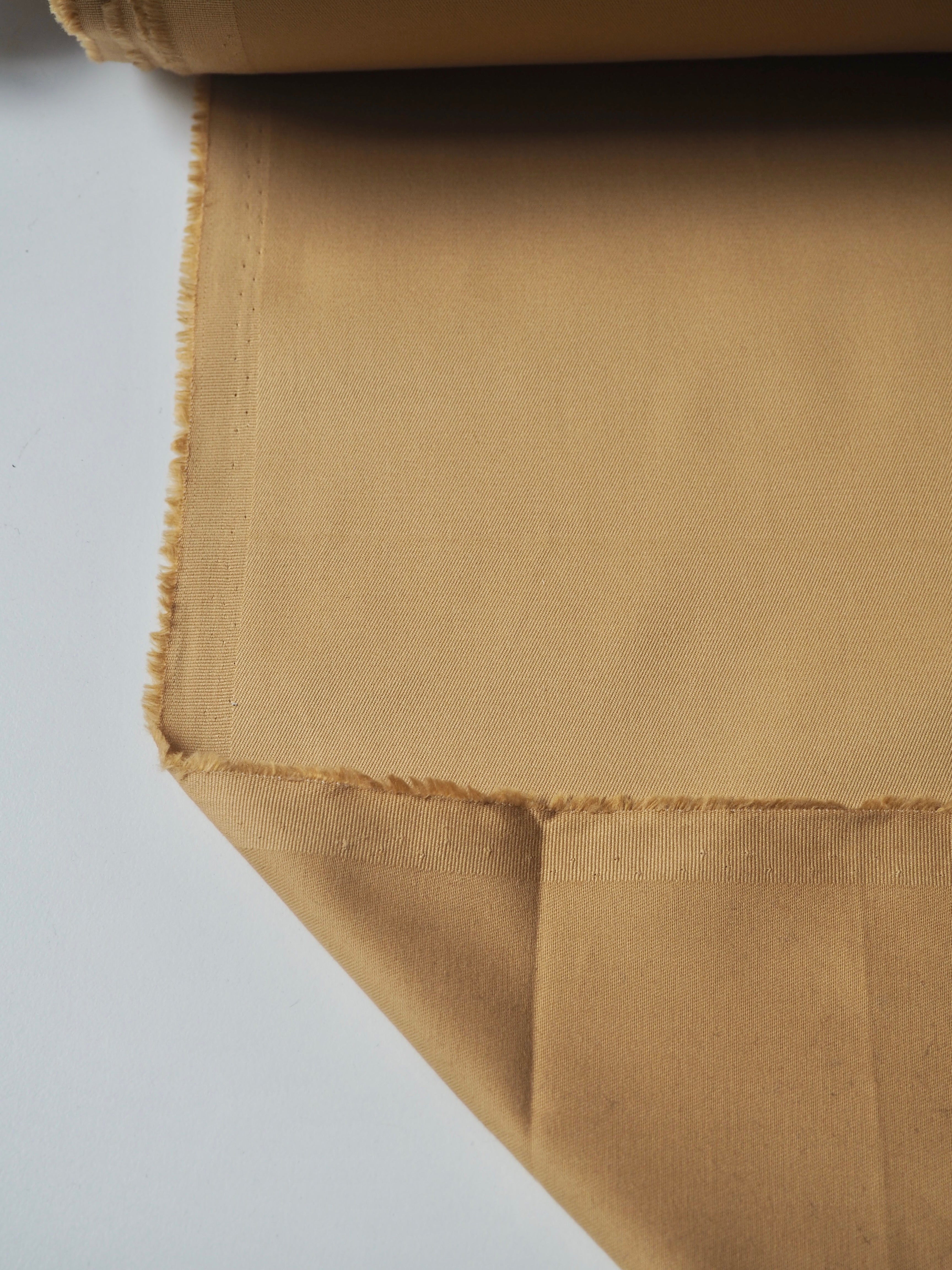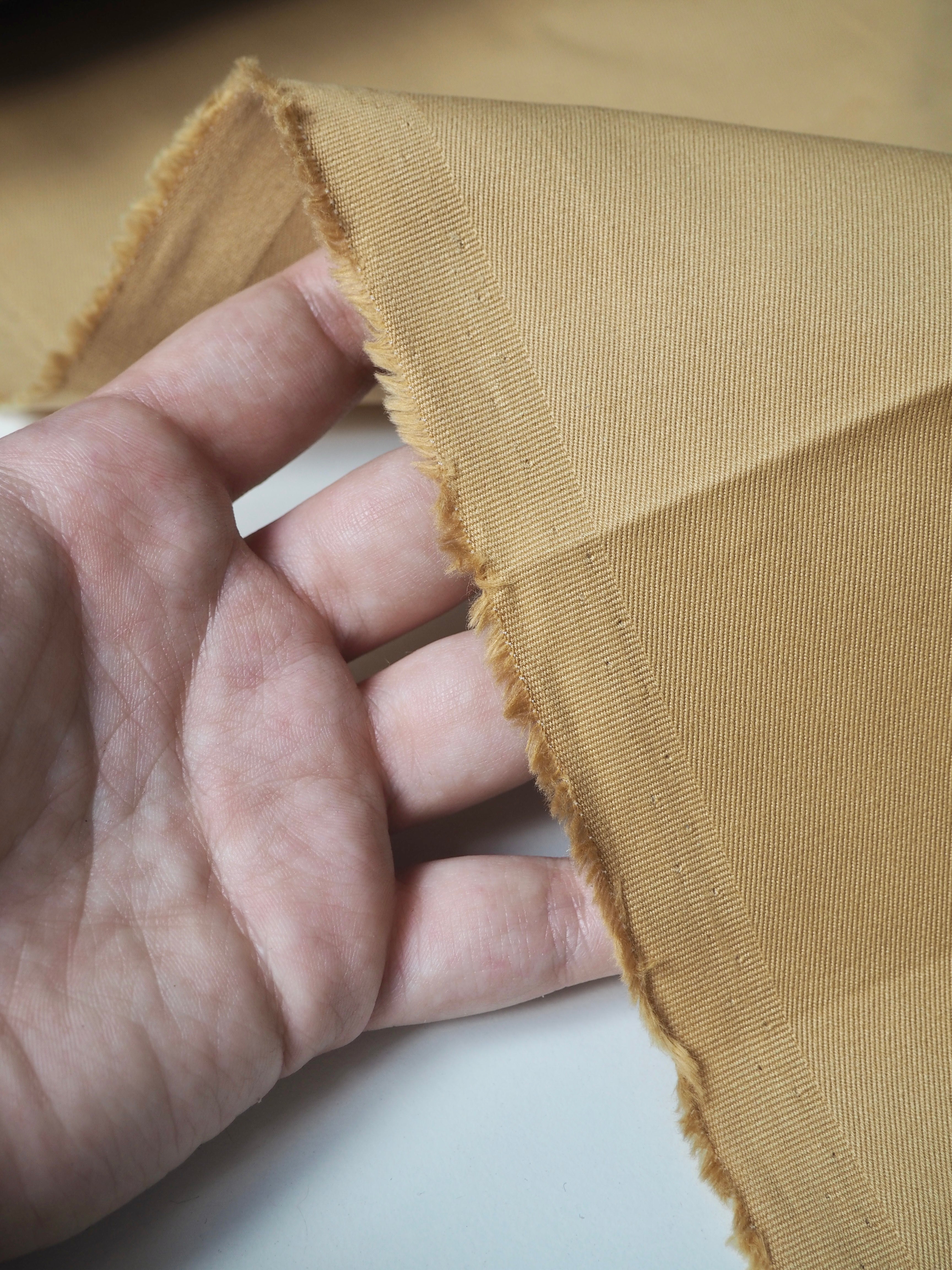 This ex-designer fabric is a stretch cotton twill. It's a sturdy weight twill with a little bit of give. It's lightweight with a nice crisp feel and very slight sheen finish. This one is from top-quality UK Manufacturer Brisbane Moss. Has a lovely soft structure that makes it perfect for trench jackets, trousers, shorts, or our Lunar Jacket!