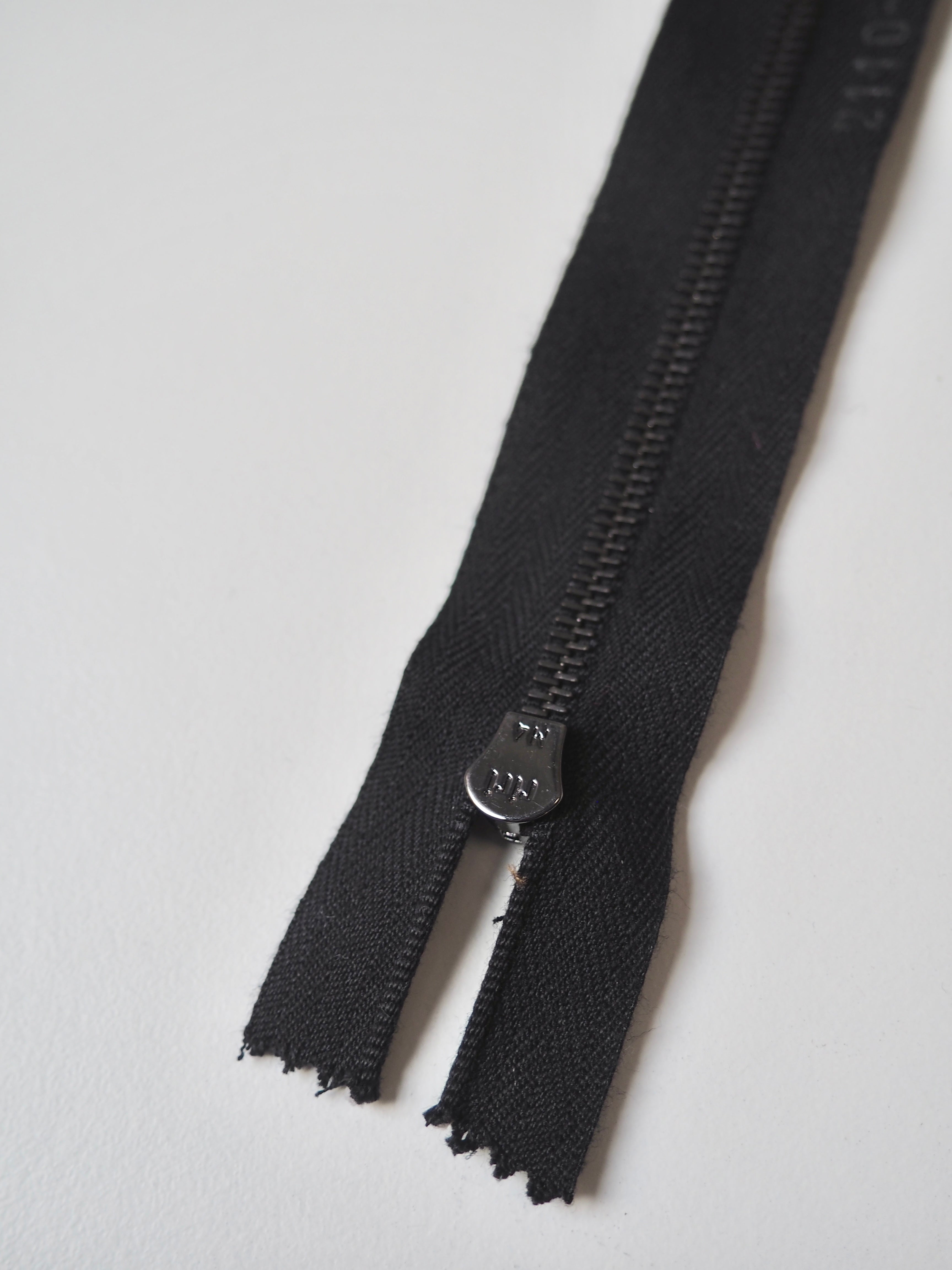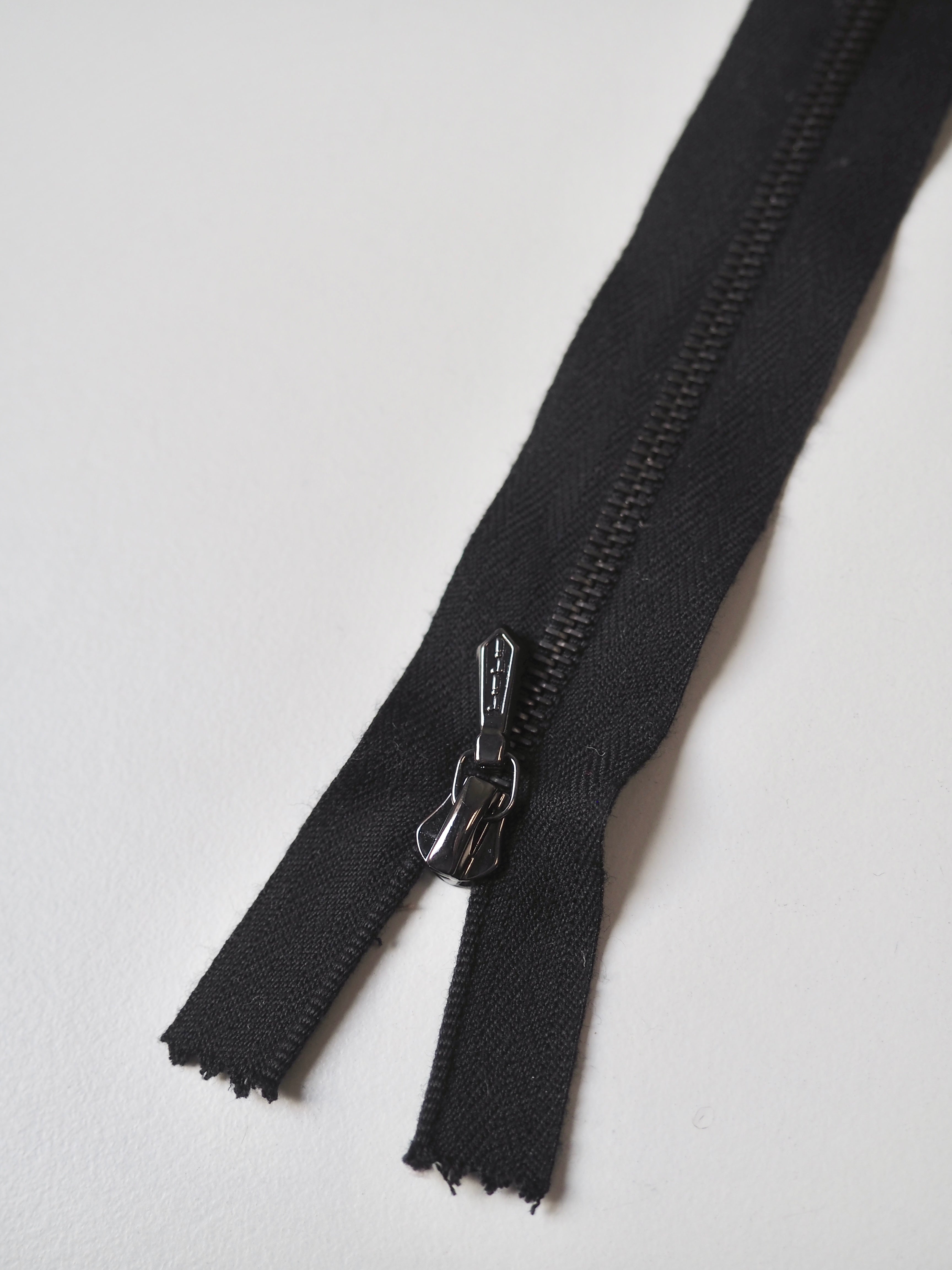 These ex-designer zips from Riri are closed ended with a luxurious cotton tape and 4mm gunmetal metal teeth.