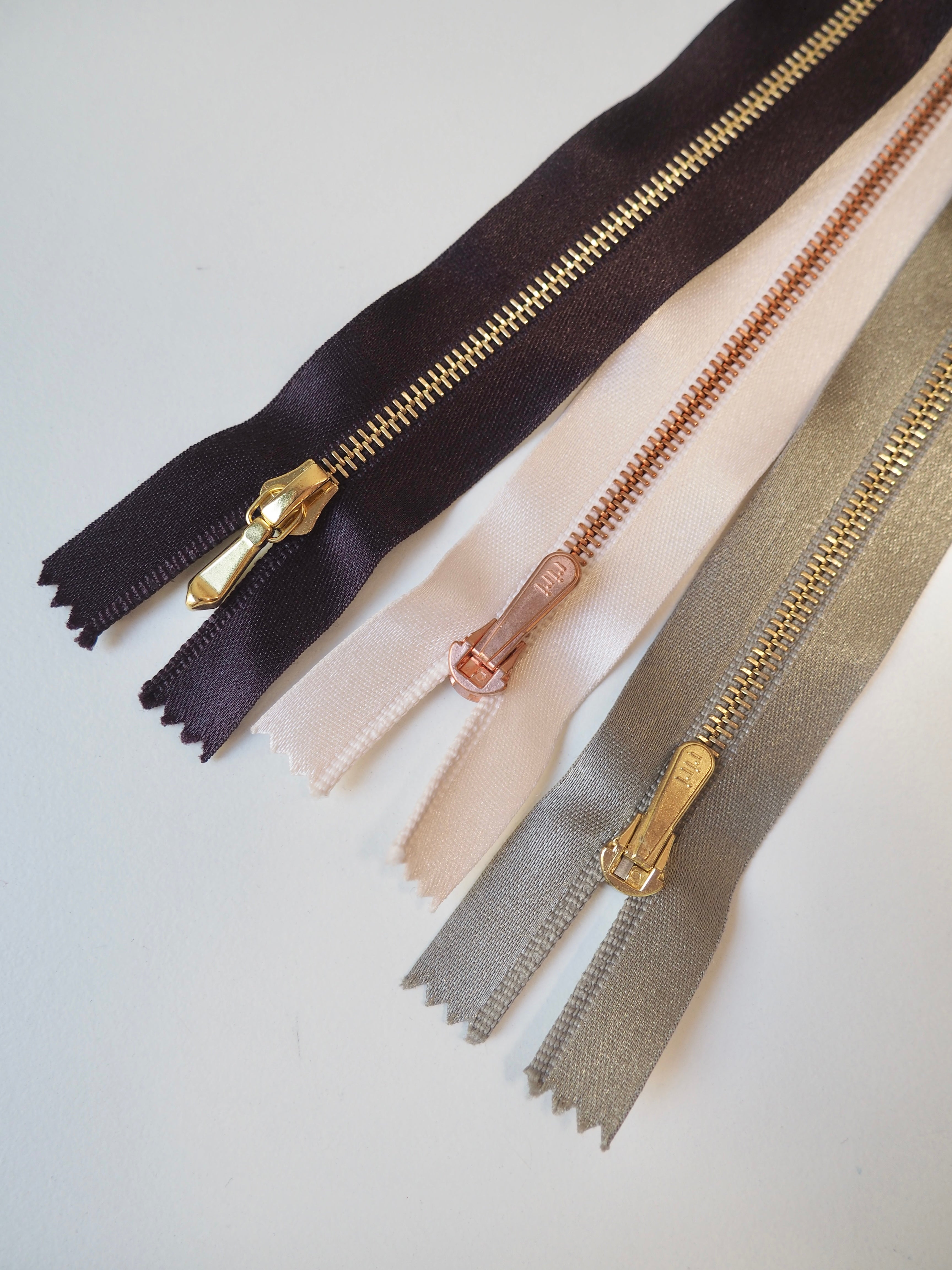 These ex-designer unique satin zips are from Riri. Amazing quality, closed ended with a luxurious satin tape and 4mm metal teeth. The pulls lock as well!