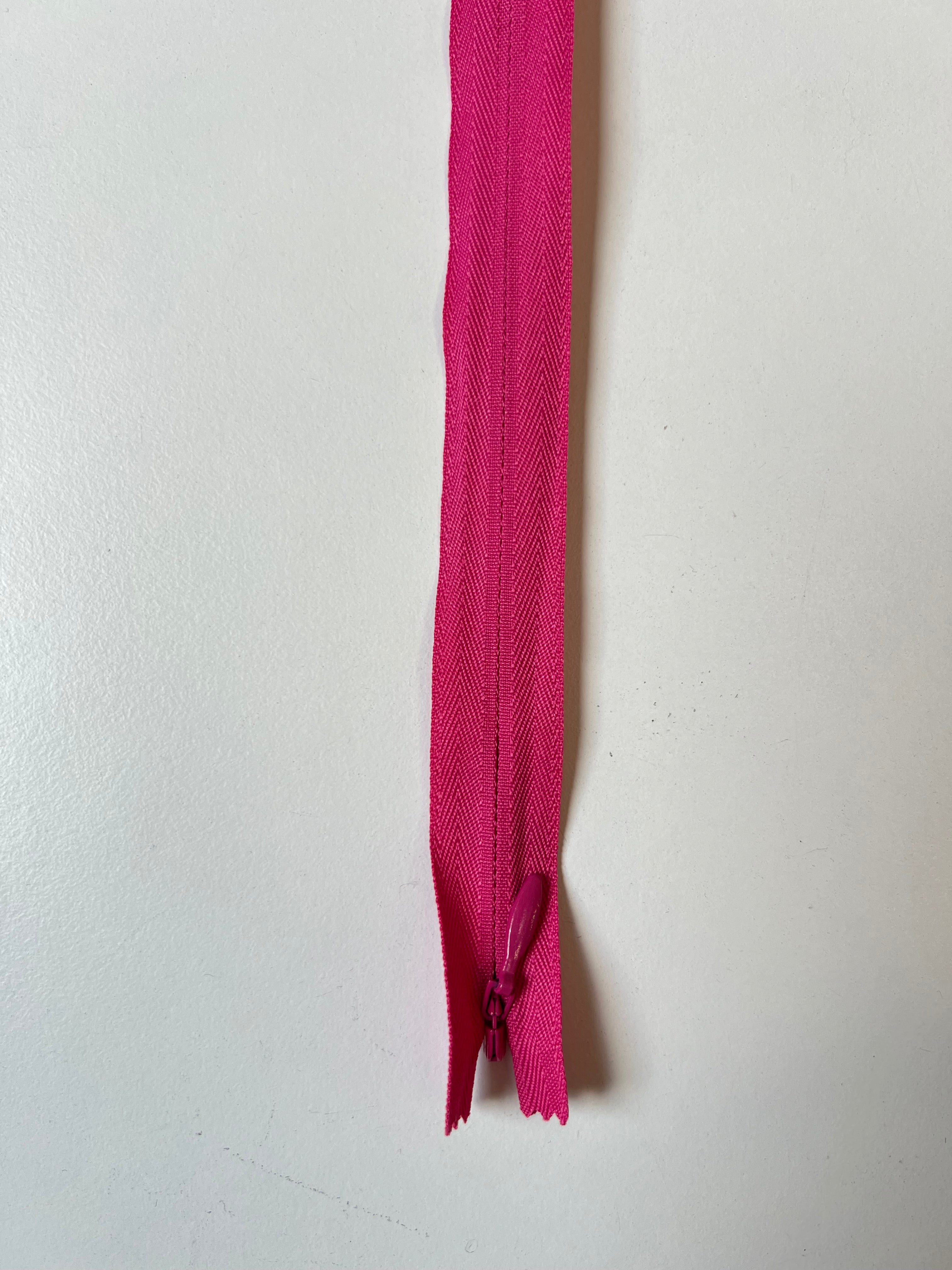 Closed end invisible zips. Available in various colours. Plastic teeth and metal zipper pull. Perfect for using as a hidden closure.