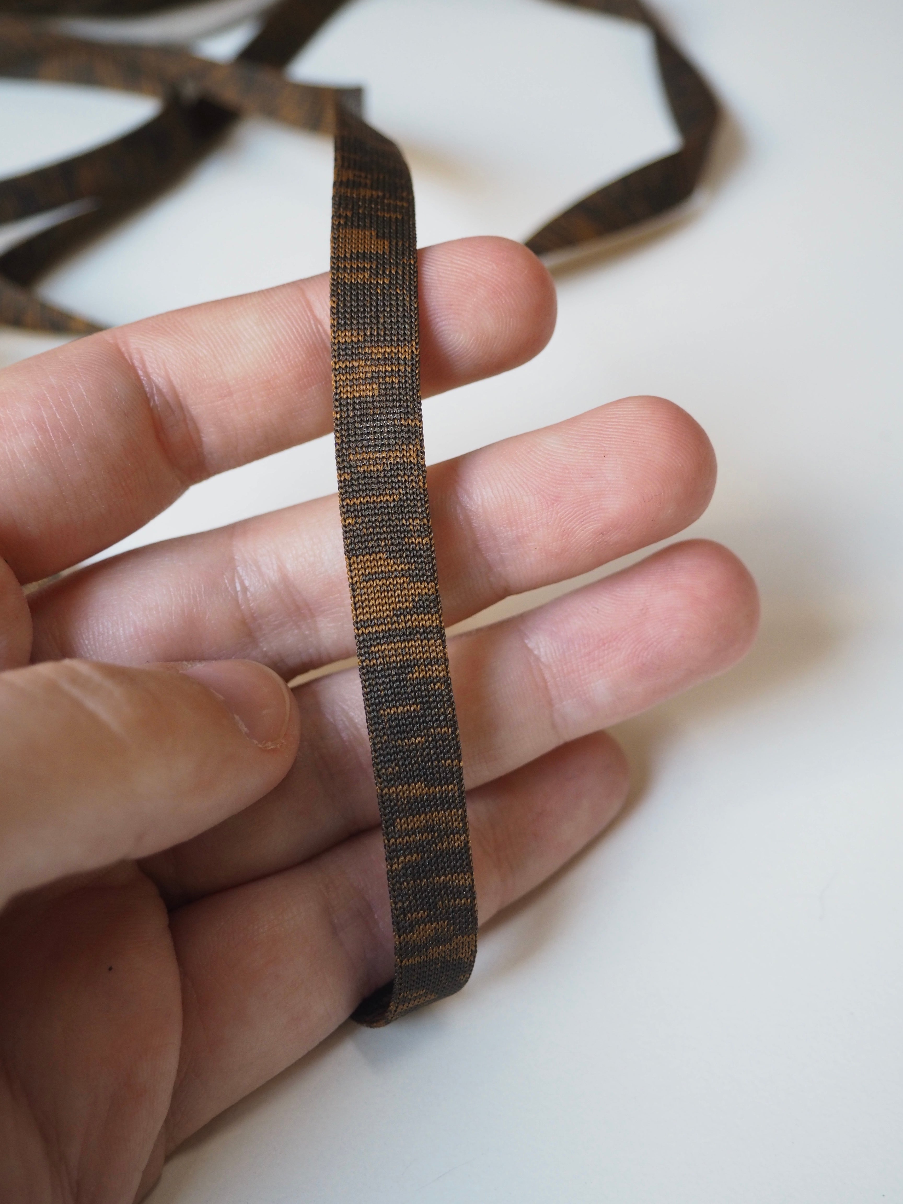 This ex-designer trim is a flat cord. This cord is perfect for ties on home furnishings, or as a drawstring on a garments. Very soft and easy to use for so many projects. It can used as a tubular cord as well. It could also be used for macrame and would look great as a plant hanger!