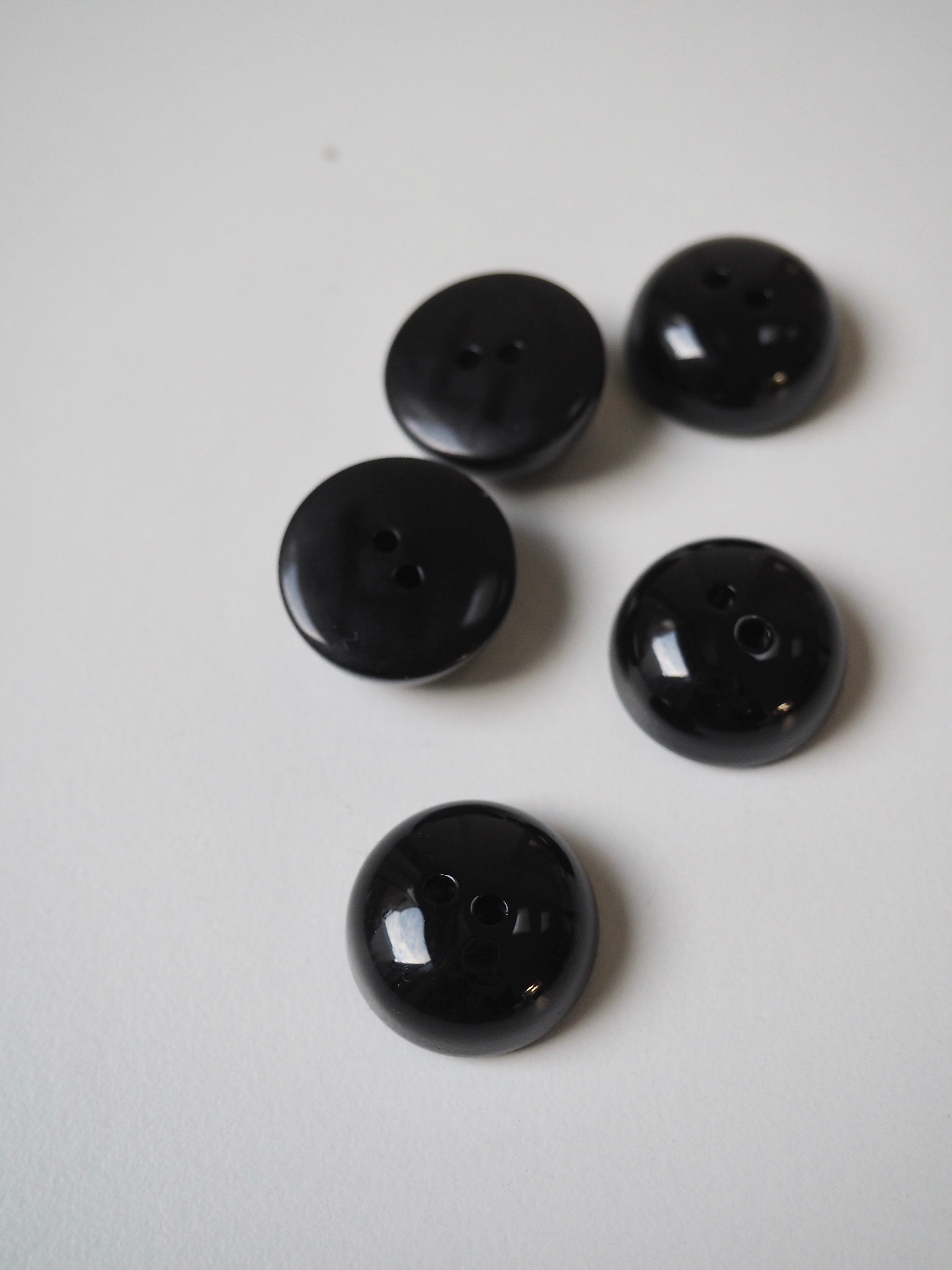 This ex-designer trim is a 2-hole domed plastic button. It has a shiny smooth finish. Perfect size for coats, jackets and cardigans.
