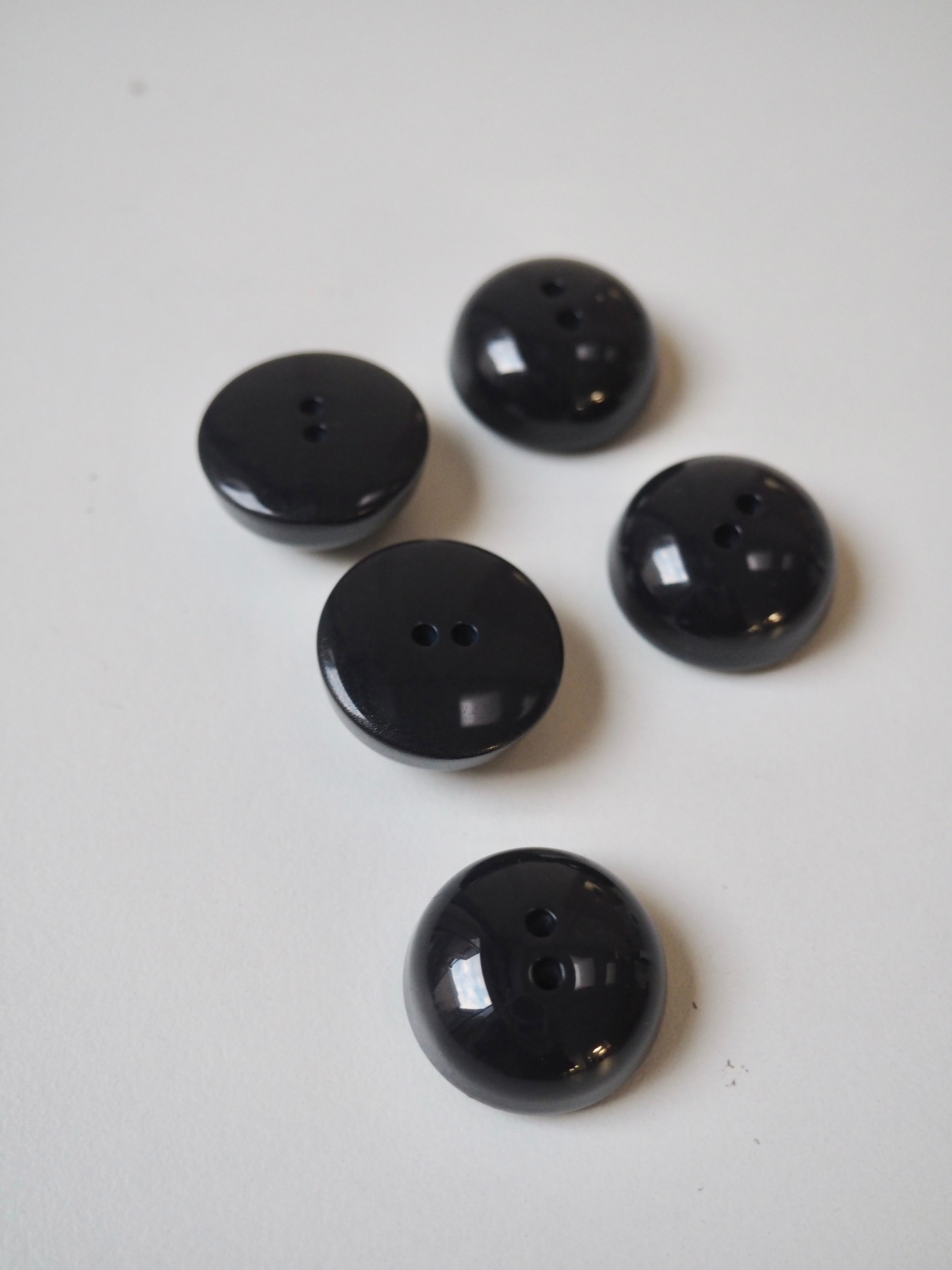 This ex-designer trim is a 2-hole domed plastic button. It has a shiny smooth finish. Perfect size for coats, jackets and cardigans.