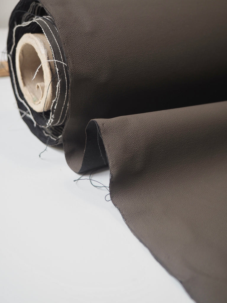 This ex-designer fabric is a wool crepe. It's an Italian double-faced cloth with a sturdy but comfortable weave. It's made of pure wool and feels and looks so luxurious! It has a soft structure and really lovely soft, plush crepe handle. Medium to heavy weight, and perfect for tailoring projects. Flexible and has a wonderful drape that makes it so easy to work with! The perfect cloth for a lifetime blazer for all seasons, and wide leg trousers!