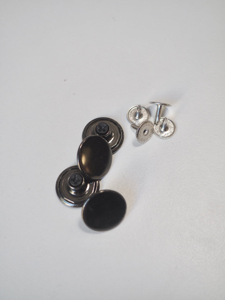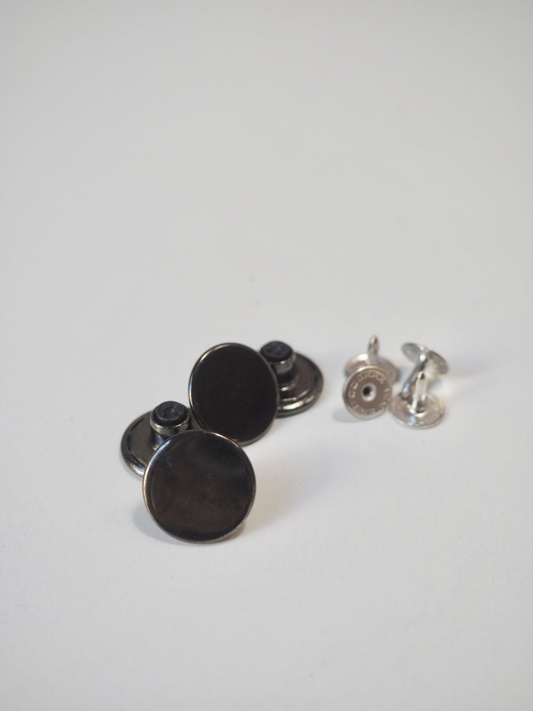 These ex-designer buttons are metal buttons. Flat with a distressed finish. Medium weight with four square holes. Perfect for elevating any me-made garments!